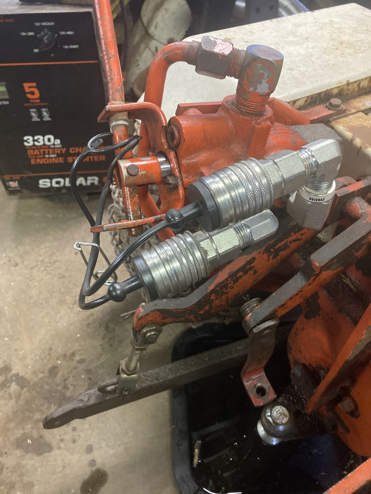 @myerslawnandgarden Bob has a very valid point. Case and Ingersoll usually had a hose coming off of one of the lines that would loop back and plug into the remaining coupling. In your case the spliter would have one male and one female coupler. This makes coupling of hoses and direction of control movement the same every hookup.