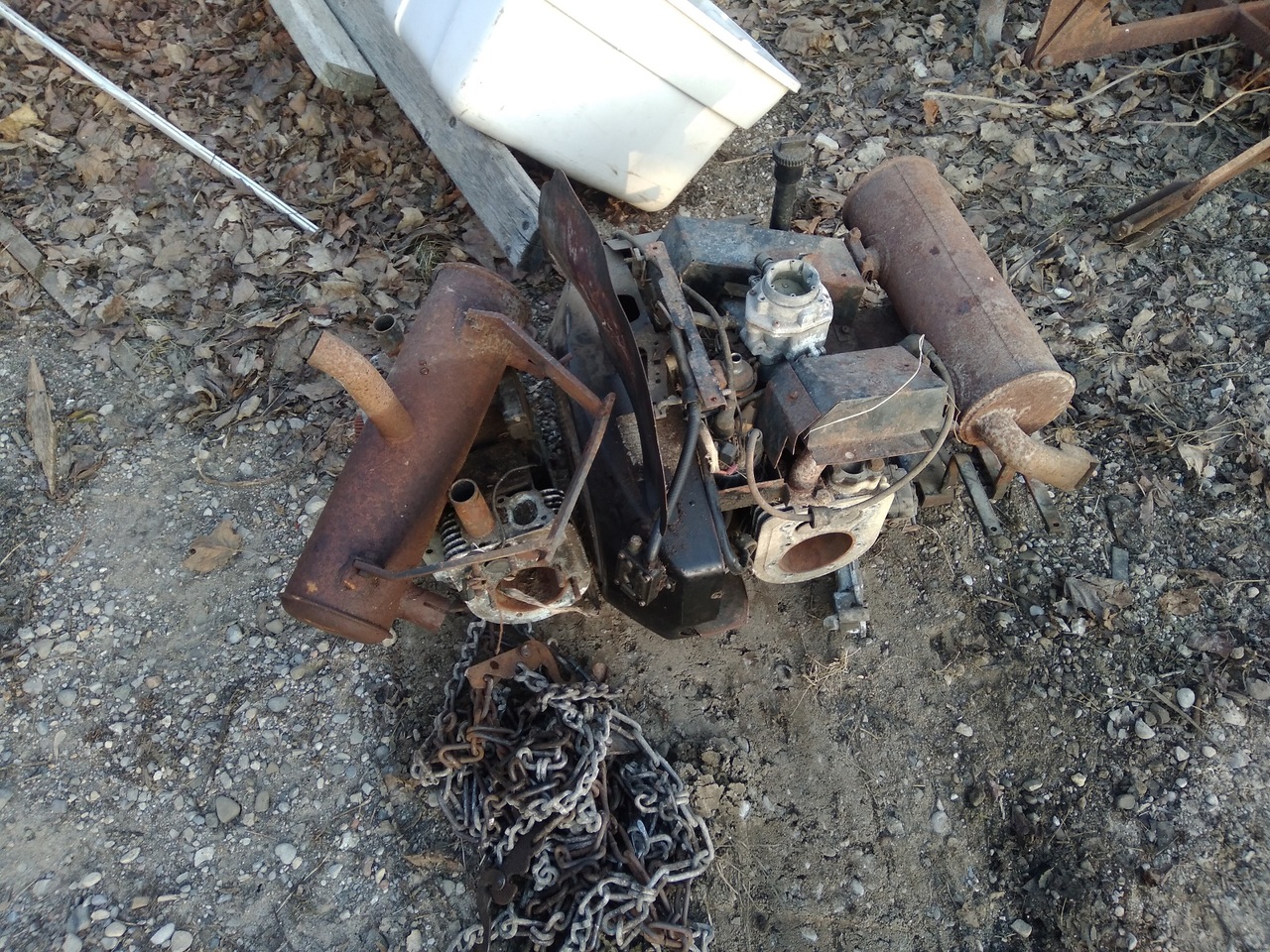 Taken apart and stored out doors with no protection.