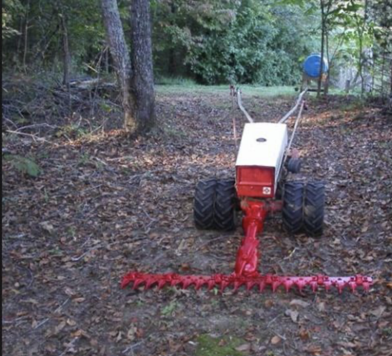 Thanks for the suggestions Tim. I appreciate your insight. I was thinking if it was mounted on the side I could drive around the trees with the sickle underneath to cut the grass and weeds. When not using I would hope it could be hinged up at ninety degrees. It appears that the drive pulley when looking down at the unit is on the right. What I need to do is go look at the unit and see if it is feasible for my purpose.