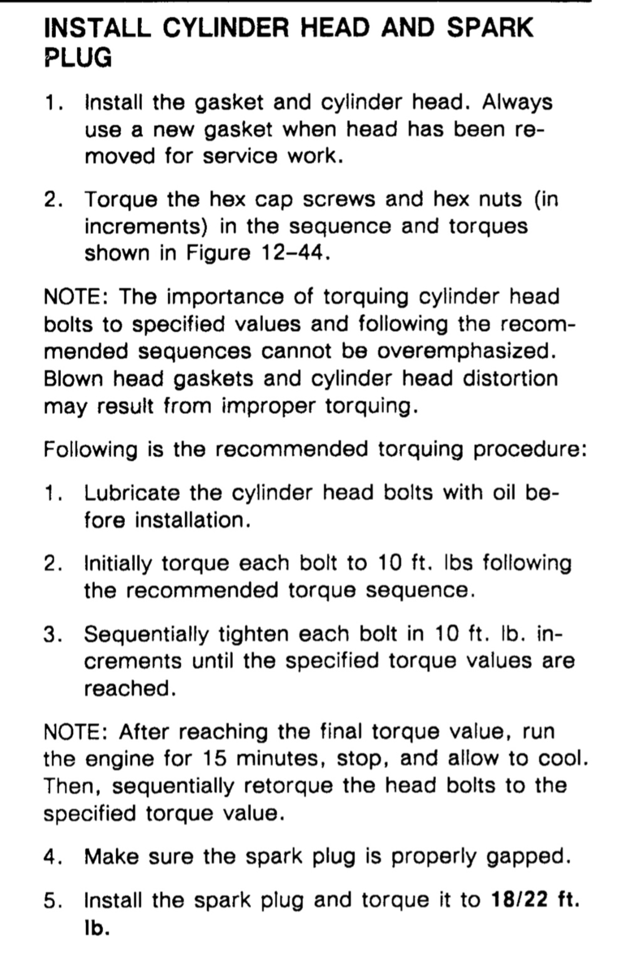Ya. Racey Eugen. :giggle: :giggle: Some thing I do when tightening the head bolts. Now this is just me. I learned this from a fella in Australia. He is a tractor mechanic. Do the tightening in stages. I do 20 ftlb, leave it for 15-30 minutes, then 25 ftlb, same wait time, last one 30 ftlbs. Same wait time then recheck. His theory is the gasket will squeeze in the wait times. I tend to agree. Then do the normal heat up and cool down, then check again at 30 ftlbs.