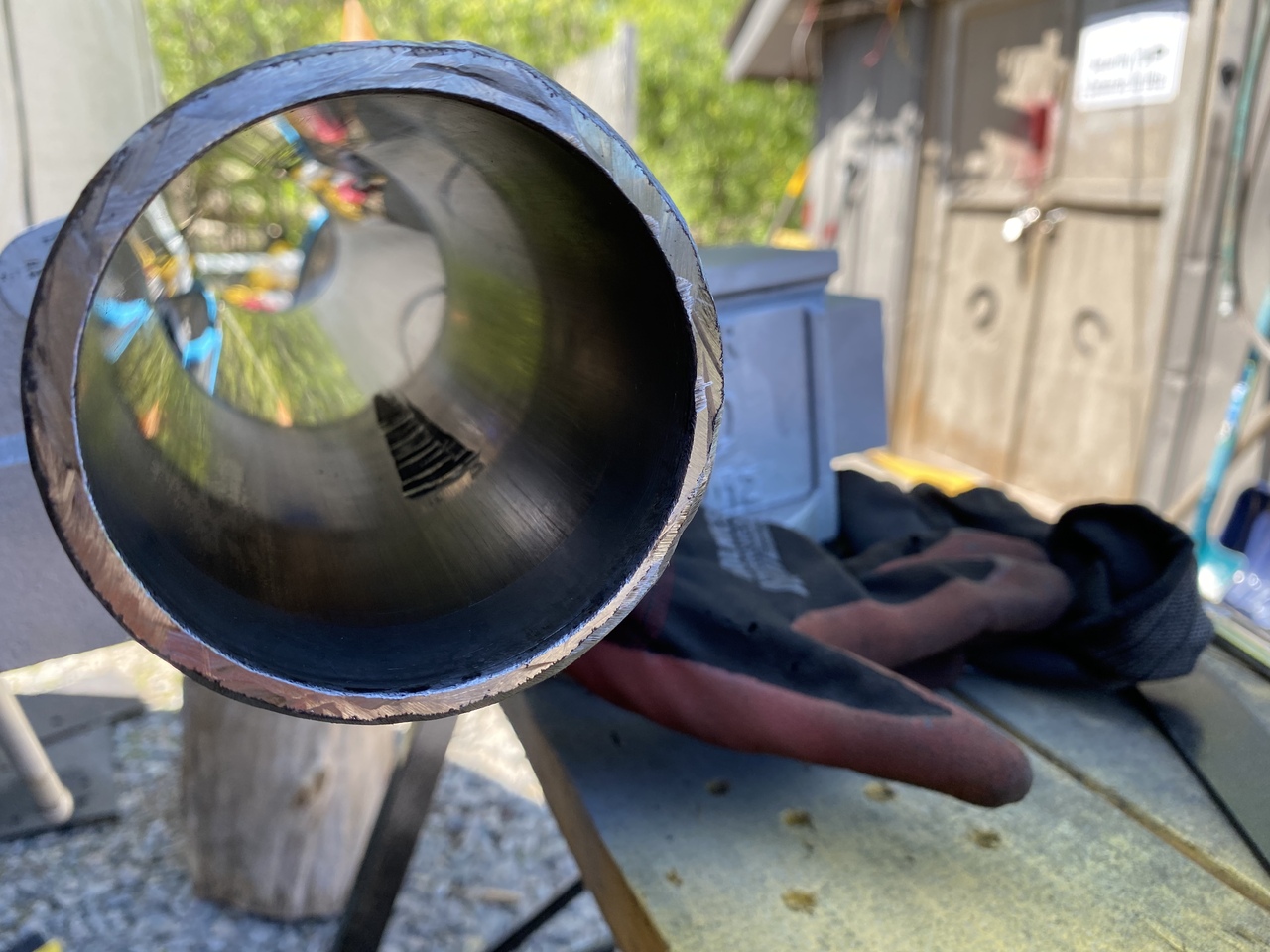 yeah, I was kidding about jb weld. 3 inch bore, about 22 inches long. I'm thinking splatter could be an issue, requiring more grind cleaning. Maybe I'll pick up an anti splatter spray and apply to the inner barrel except for the gouge (masking tape). I'm also thinking 7018 stick DC because one, it reaches easily inside, not like the mig, and it splatters the least (for me). It'd be nice to turn the inner weld bump on a lathe after the initial welding, but I don't have a steady rest for my lathe and the piece may not fit anyway.