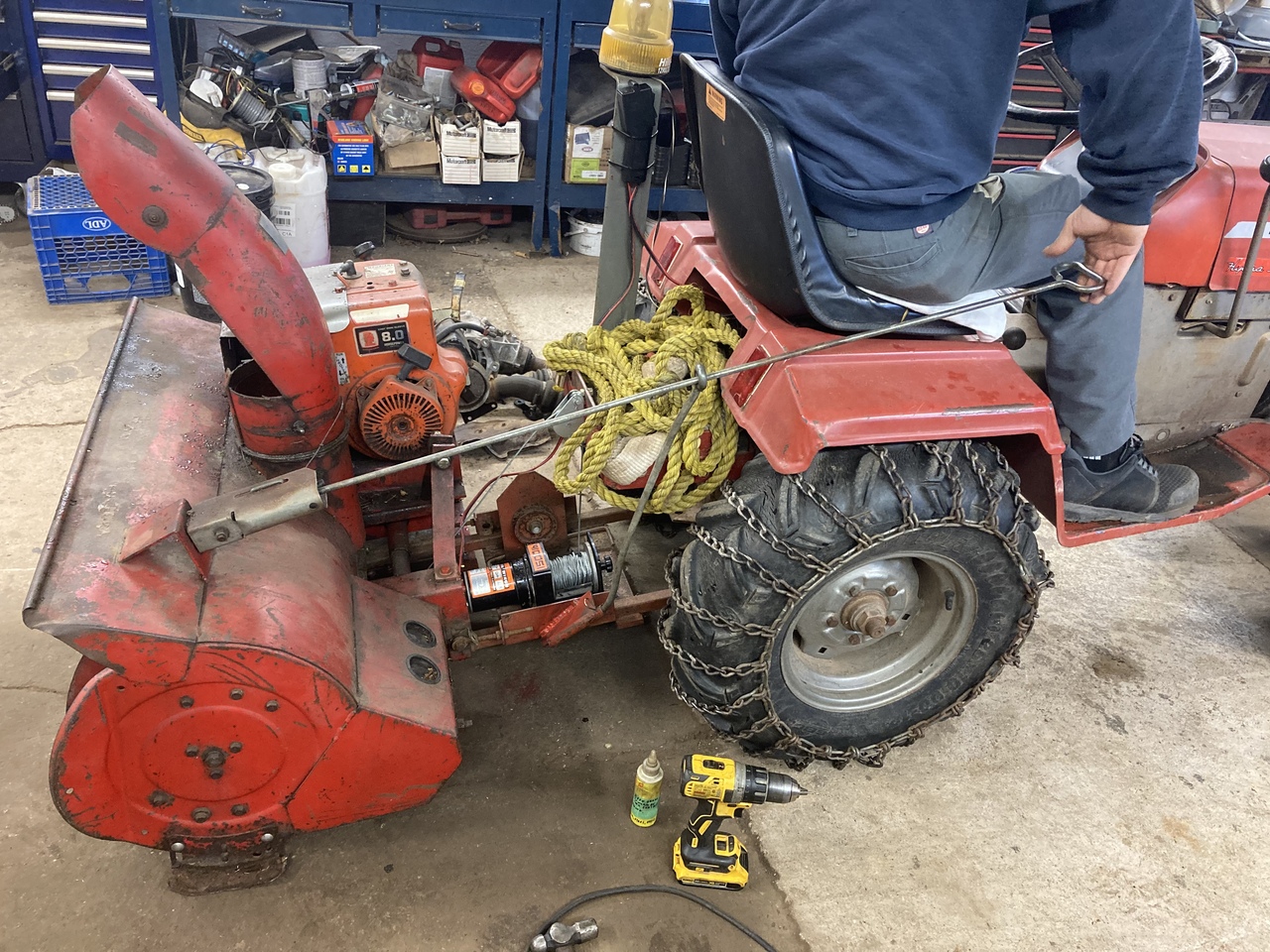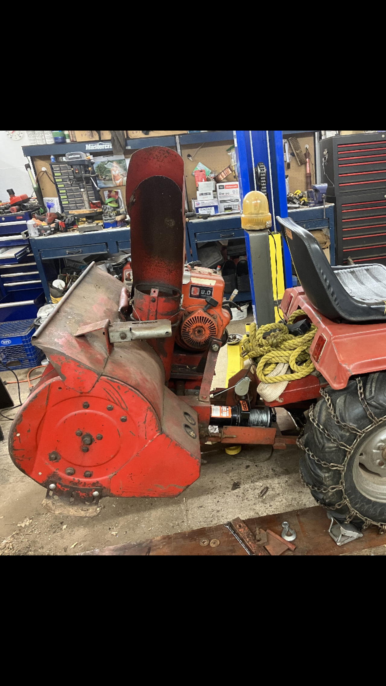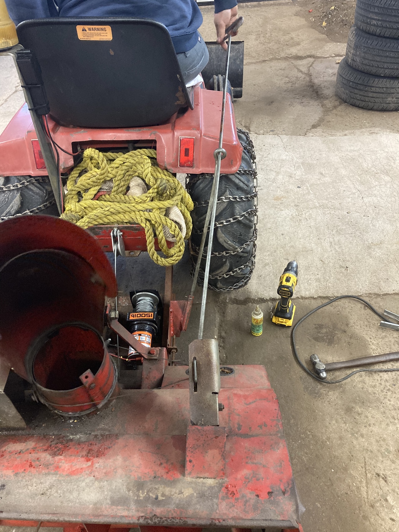Son and I got a little more done on the rear snow thrower. Got the chute turning handle rigged up. A gas tank now, or draw fuel from the tractor and she should work.