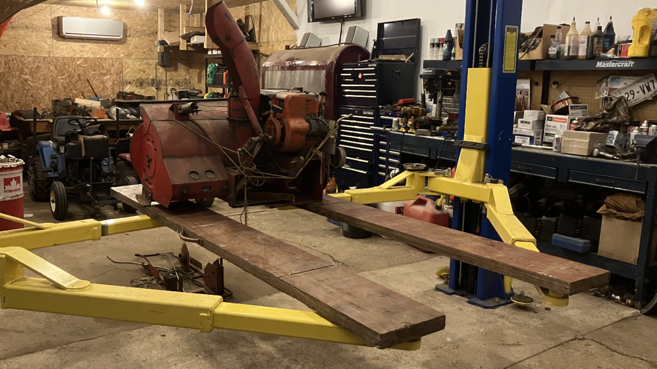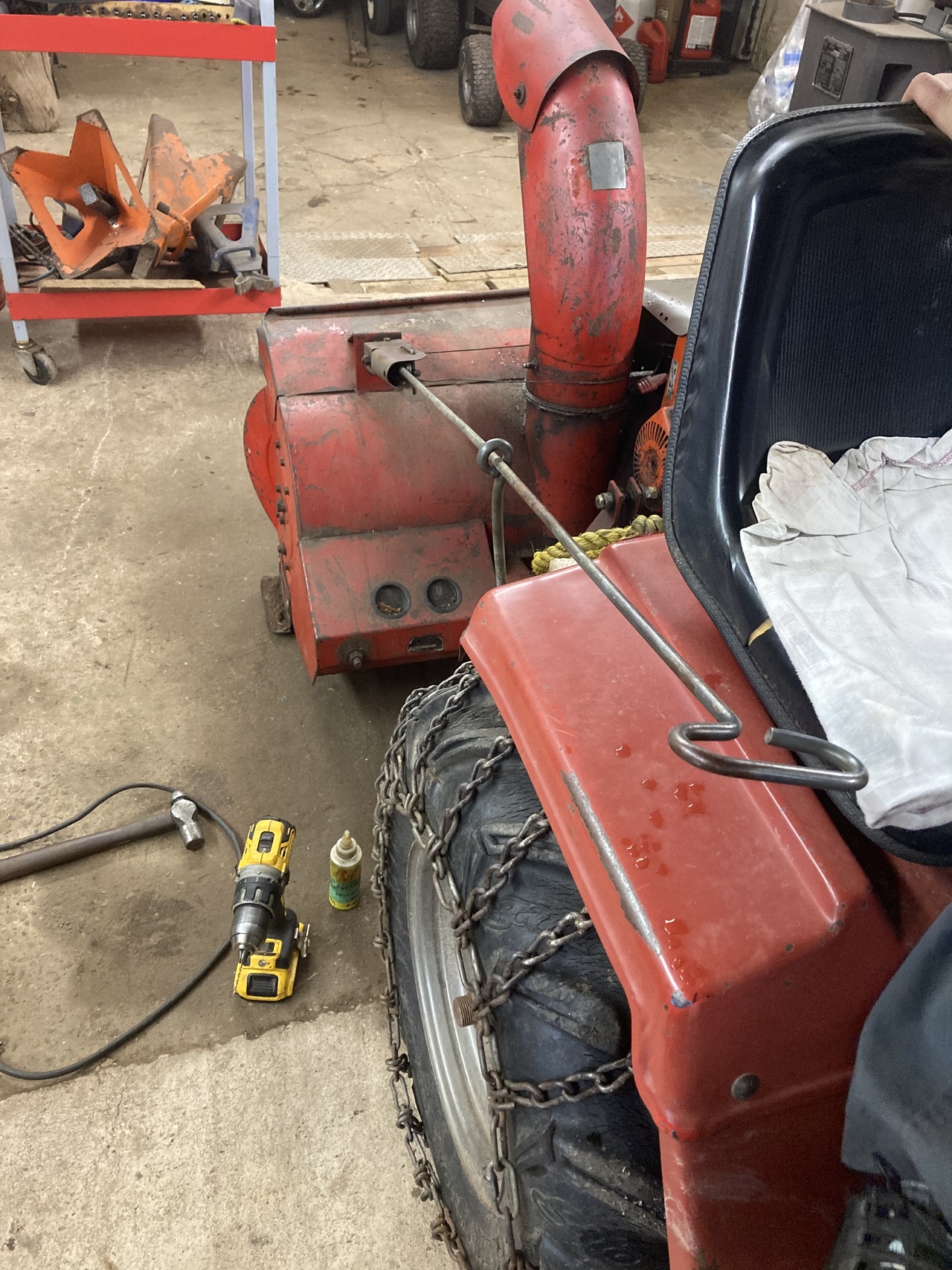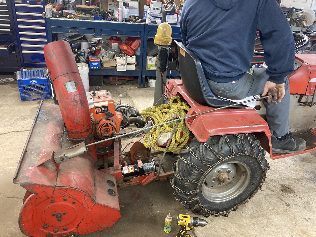 Son and I got a little more done on the rear snow thrower. Got the chute turning handle rigged up. A gas tank now, or draw fuel from the tractor and she should work.