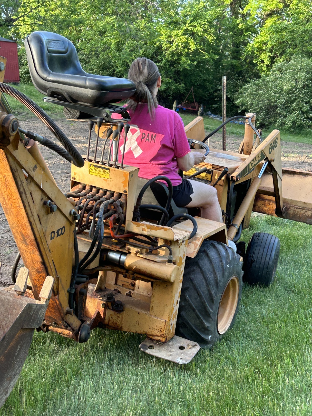 came out to see. I told her I was going to push them in with bucket on the 648 like I did last year. Well that’s a no go. The ground is too dry and hard around the edge of the garden to just push them in.