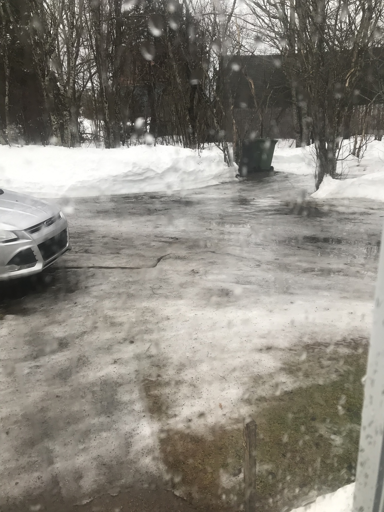 Right now it ice with rain on it. That’s the worse to try and walk on.