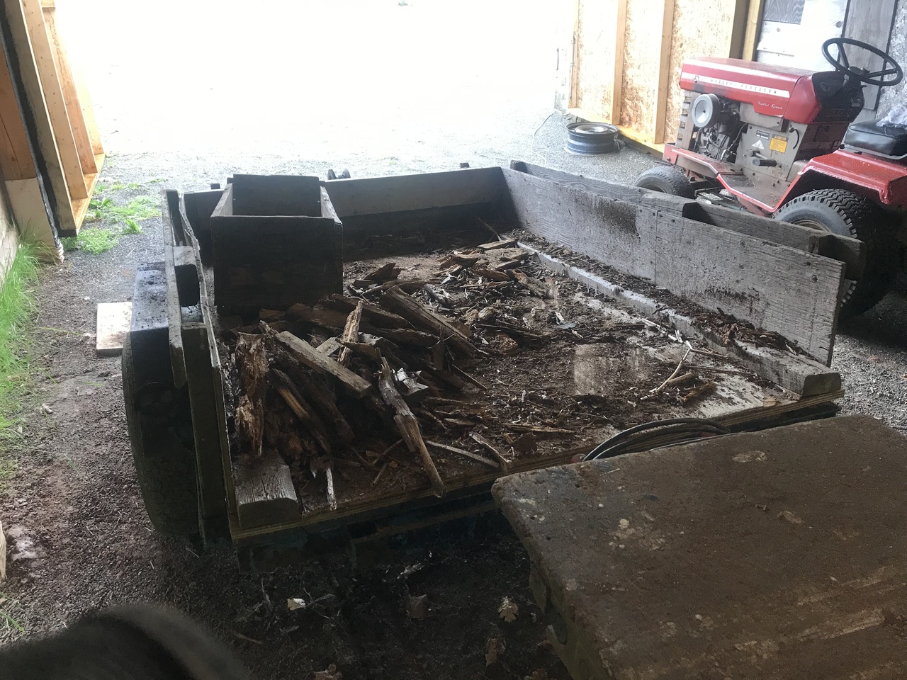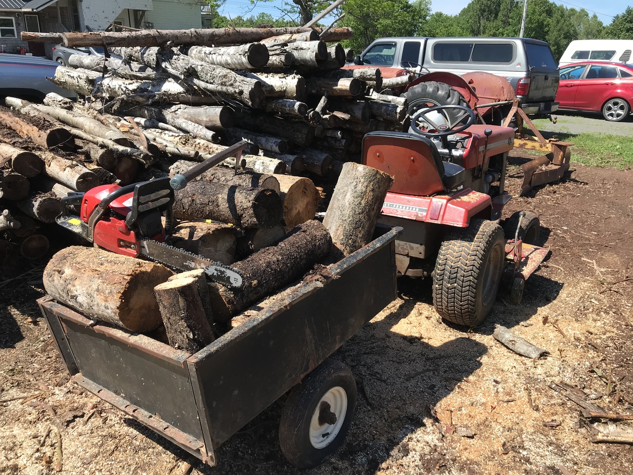 Well that was it for today. I’ll go back tomorrow. Not suppose to be raining, so I’ll be able to cut some softwood. That’s the next layer to put on. Already got wet getting softwood today so that’s enough of that. Got all the old wood sticks and stuff in the trailer cut up. Another load of that stuff outside yet.