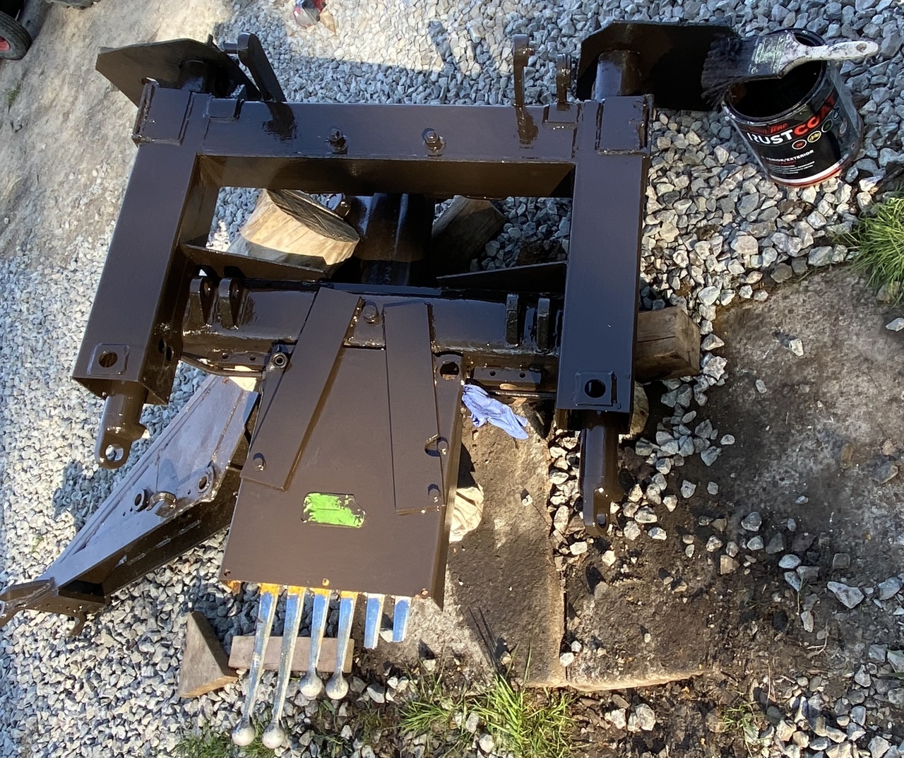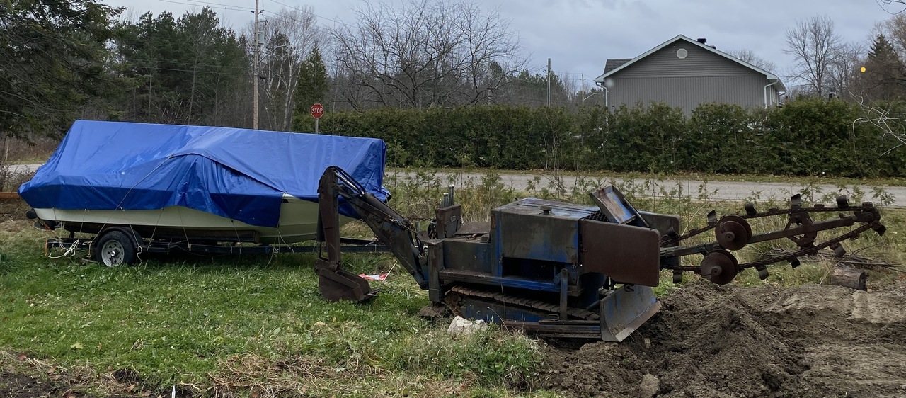 There isn't much above, the frame, which is really really thick. All it needs is to take the trencher chainsaw out, and put a seat on it. Anyway, it's a neat lawn ornament until next summer and more reason for my neighbours to question my sanity. To put things in perspective, judging by the number and size of equipment I now have, you guys probably think I live on acreage; when