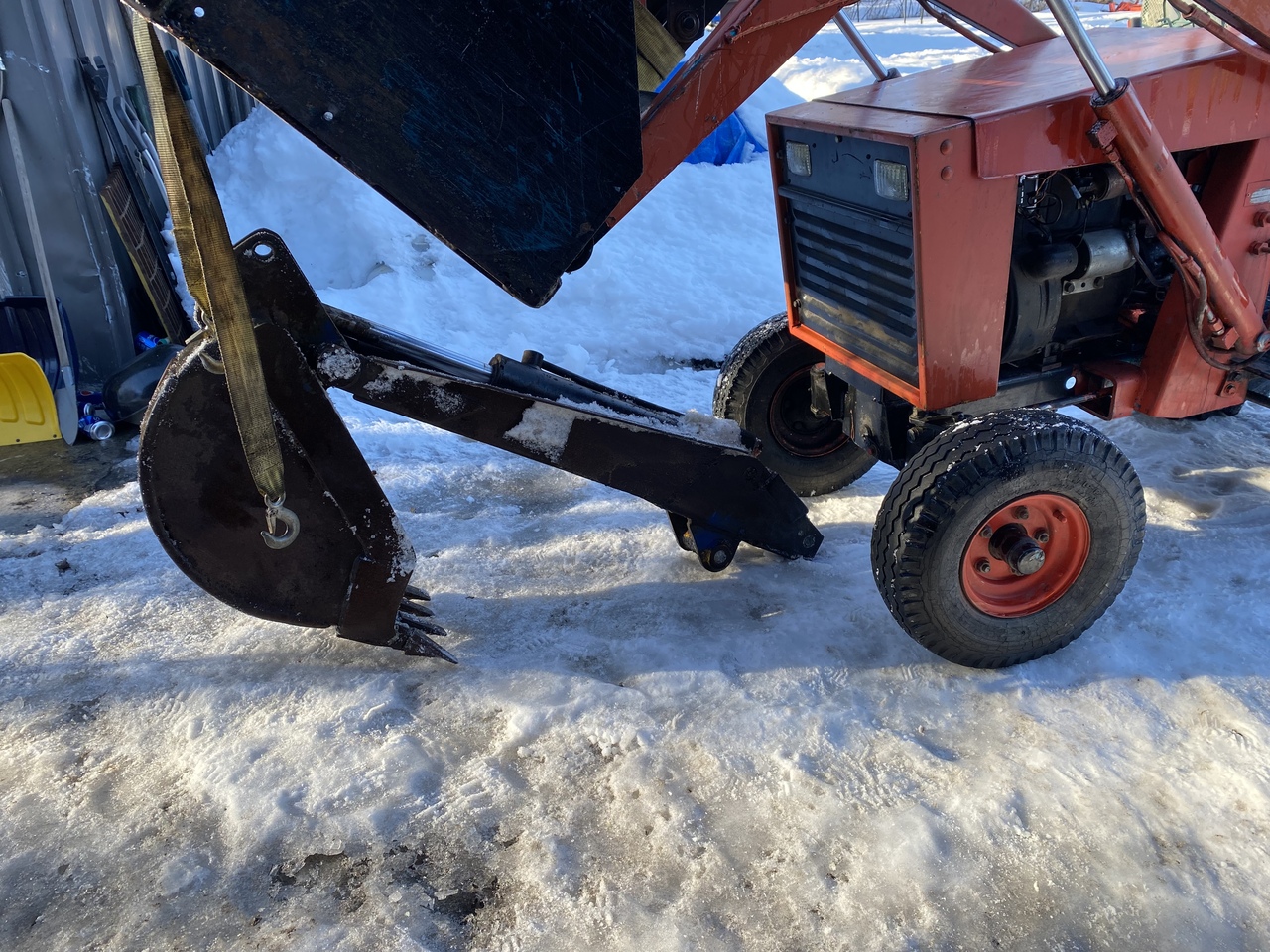 A few days ago I noticed a device on the market place, with what seemed to be a small size backhoe on it. The device was listed as a Davis/Case 500 trencher. At first I paid no attention to it, as it looked in pretty bad shape, and I didn't clue in to the Davis name, who made the backhoe for the Case LBH series. Somehow the penny dropped and did a search on the device, indeed the backhoe was a Davis model D100. The price was definitely in the range where only the backhoe would be worth it to me, as it would save me from building one as I was planning to do. It also helped that it was not too far from me (2 hours North).