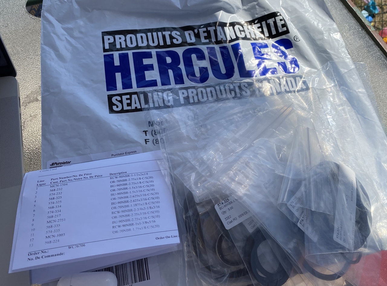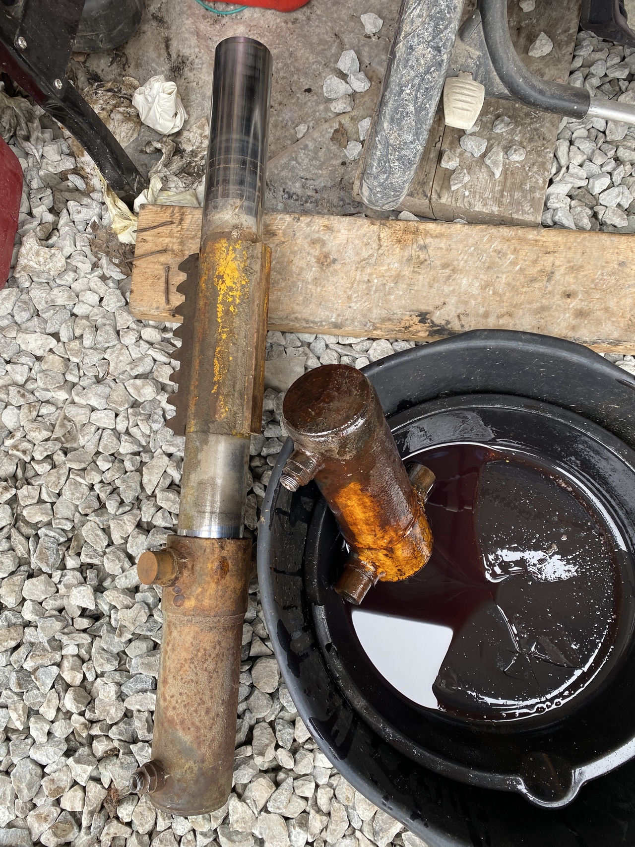 I'm not going to ramble today. New cylinder, pins, fittings, top and bottom spool o-rings on the valve, topped up the hydraulic oil. Tested it a little, no leaks, seems functional.