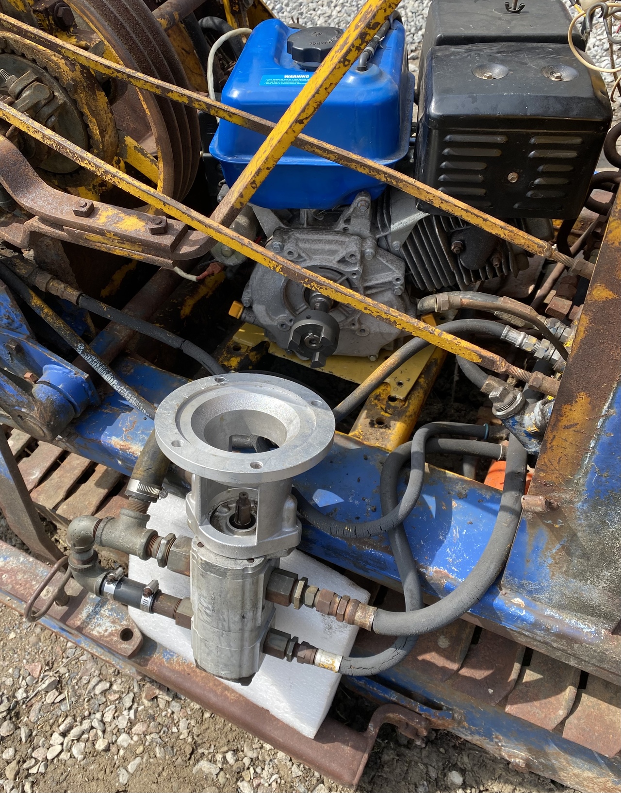 To make matters more fun, it's missing the fan, radiator, exhaust, and more importantly, a bell housing adapter to the hydraulic pump.