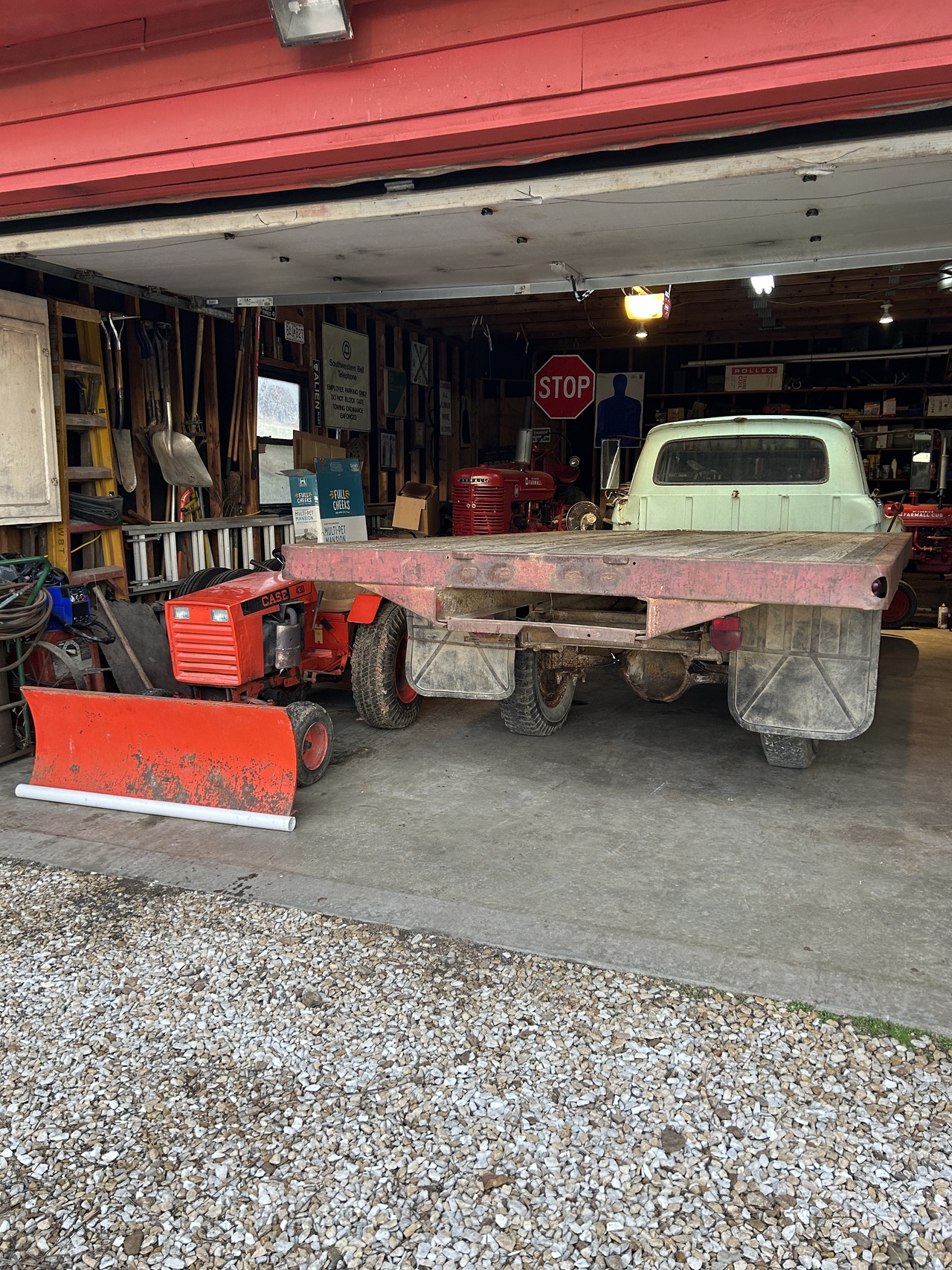 I think it took longer to clean up the shop than it did to move stuff! Seems like I blink and it’s dirty again. The truck just fits with enough room to work and for the 446 to park should I need to move snow.