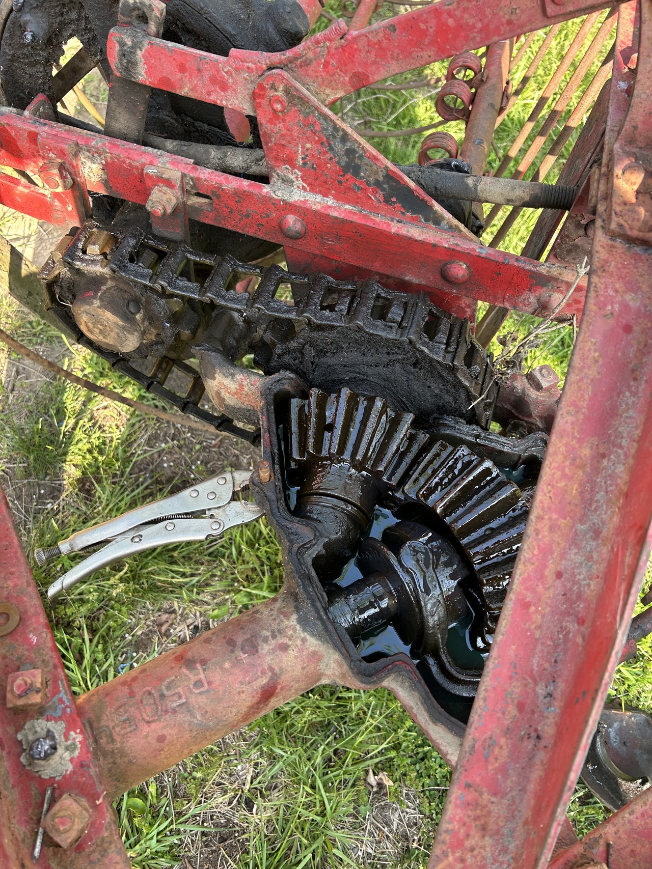 There is a small company here in Missouri the reproduces manuals for old equipment. It was only a couple of dollars so I got one for this rake. The book says the gear box should have 2 pounds of general purpose grease. I’ll have to pick up a couple of tubes for that.