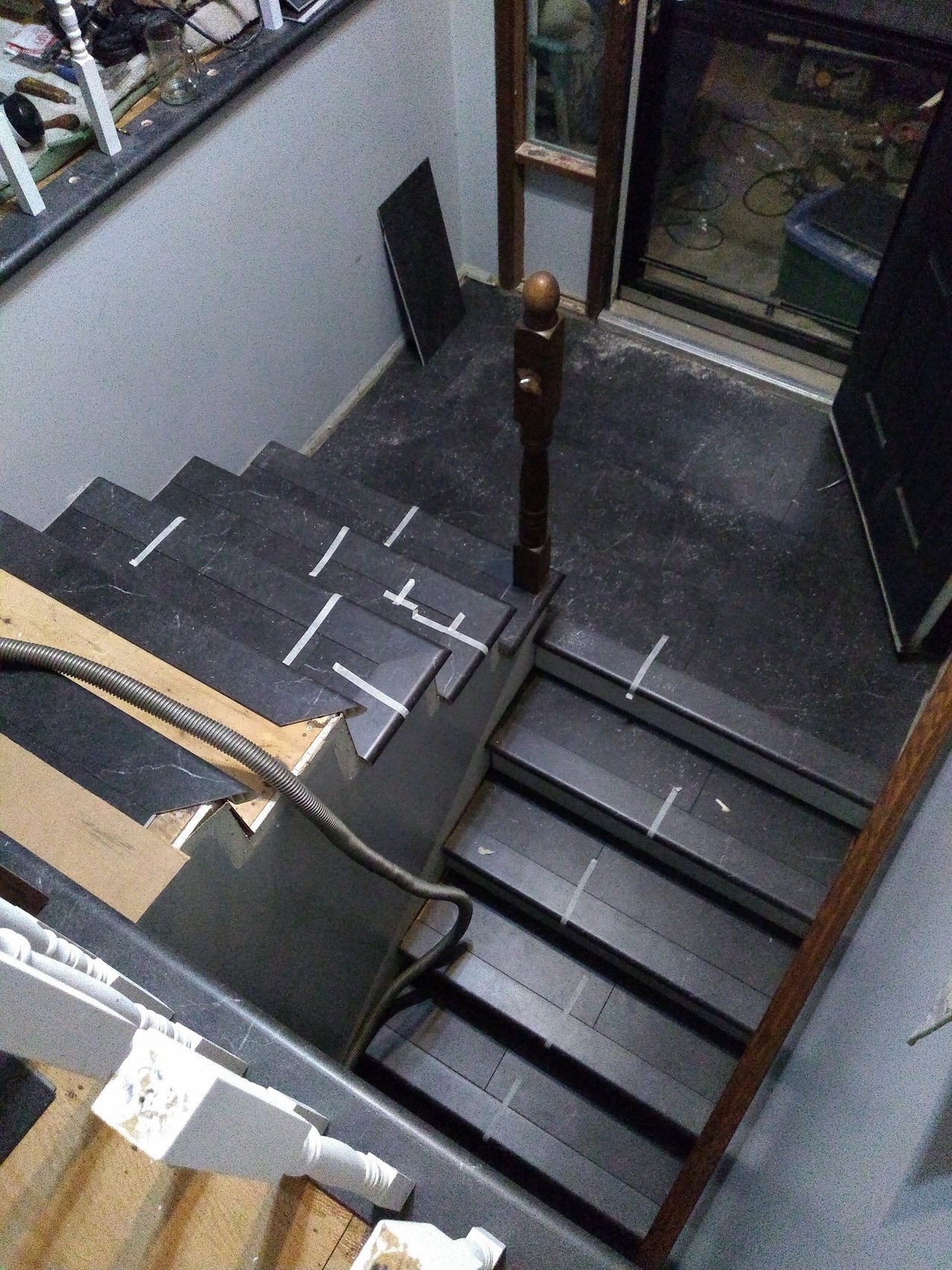I can see now why the quote for doing the stair way was $100 per tread. Undercutting the pieced tiles has been a learning curve.