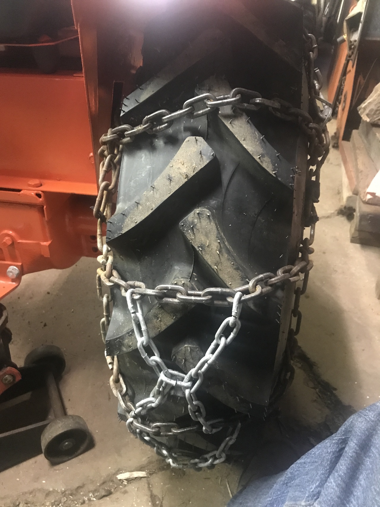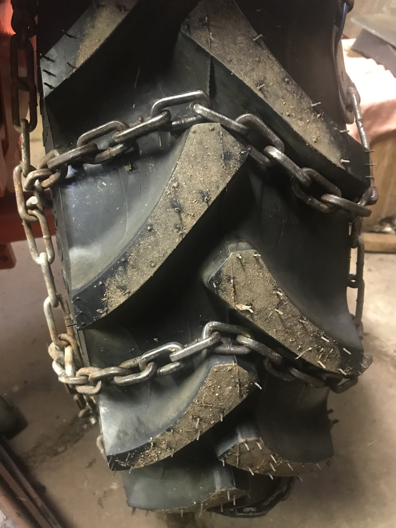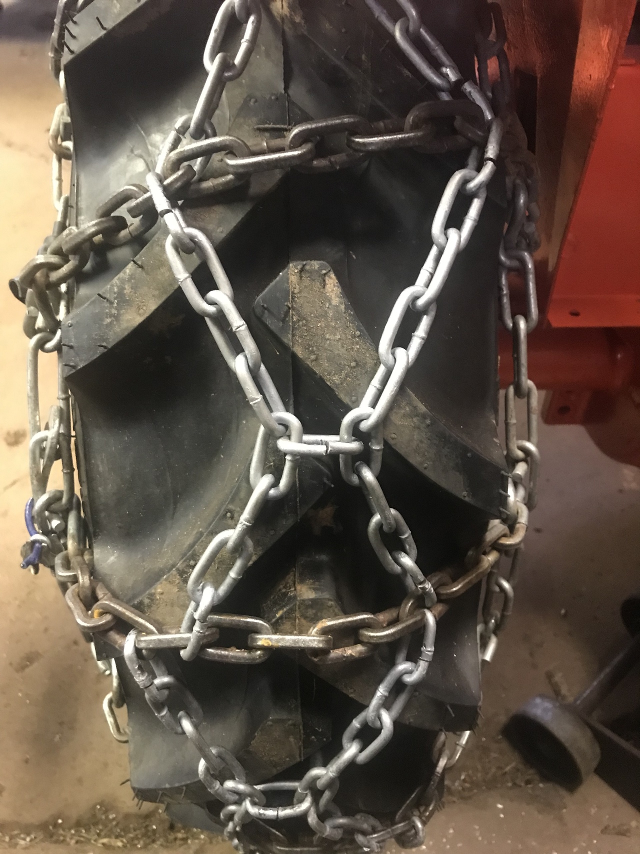Those look nice and should will work well. I think what your doing is the only way to effectively use chains on ag tires. My 6018bh has the 29x12.5-15 ags on it and once your on ice and flat ground I'm not going anywhere. I'd like to make up some chains like what your doing. In the snow I'm fine.