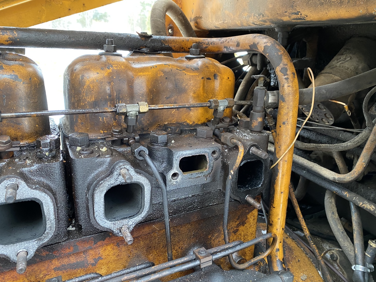 Because most head bolts are covered by either rockers or fuel return lines. Not having that tool I quickly took those off. And the muffler, to get enough space for leverage. Good thing about this engine is that it doesn't get cold fast, it's massive. Worked as fast as I could. Then assembled it and adjusted the valves again. Tomorrow I'll do some more tests.