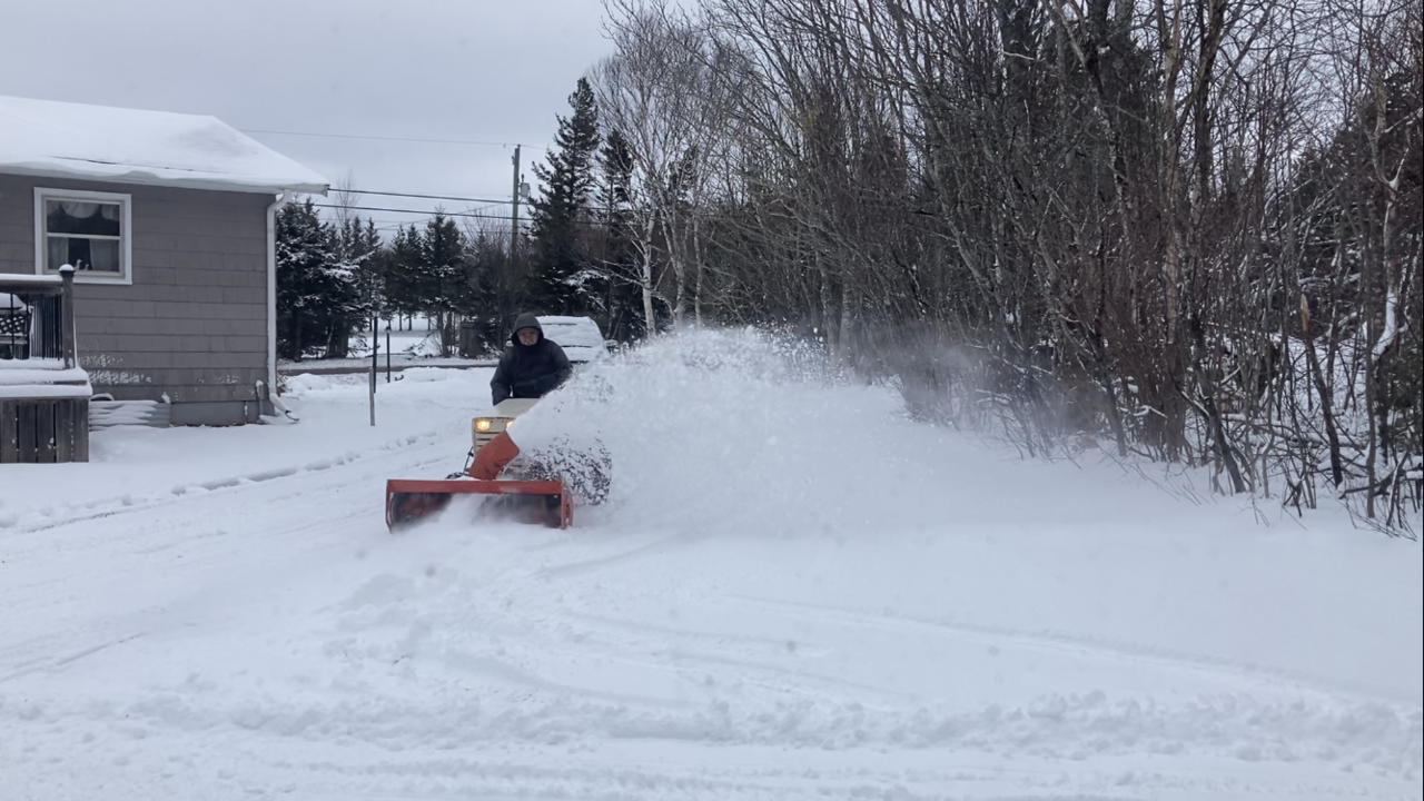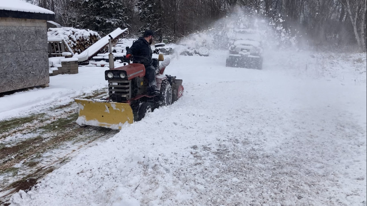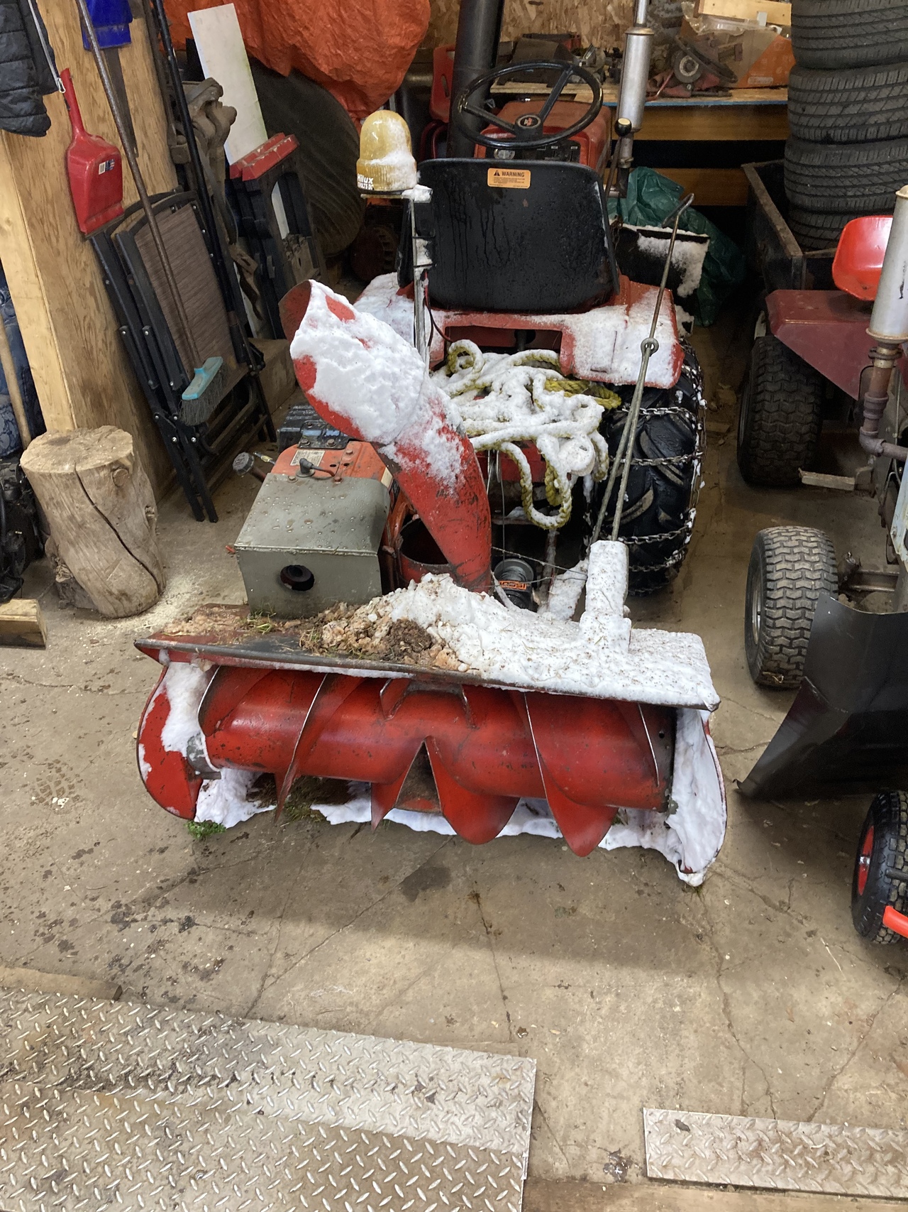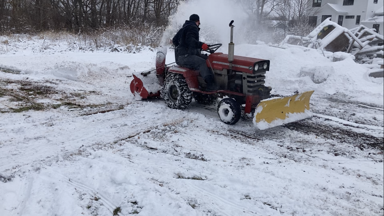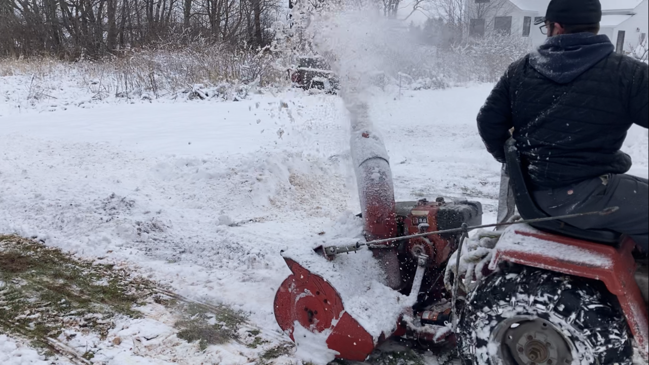 Well some wet snow last nite and son had the rear mounted thrower out heaving the wet snow. Worked good. The 8 hp tecumseh motor sounds great when the load comes on it. Throwing the wet snow not to bad. Video on Real Garden Tractors web site or face book site, what ever it’s called,