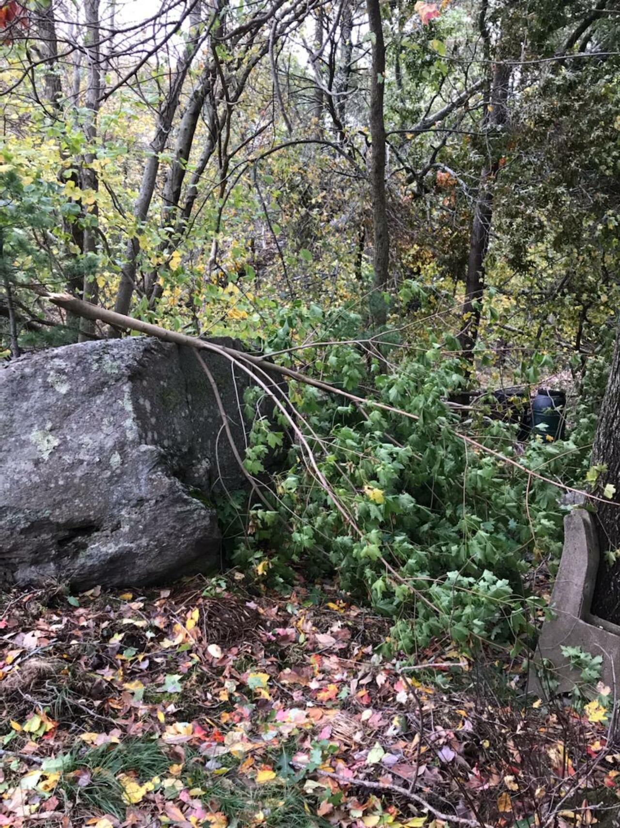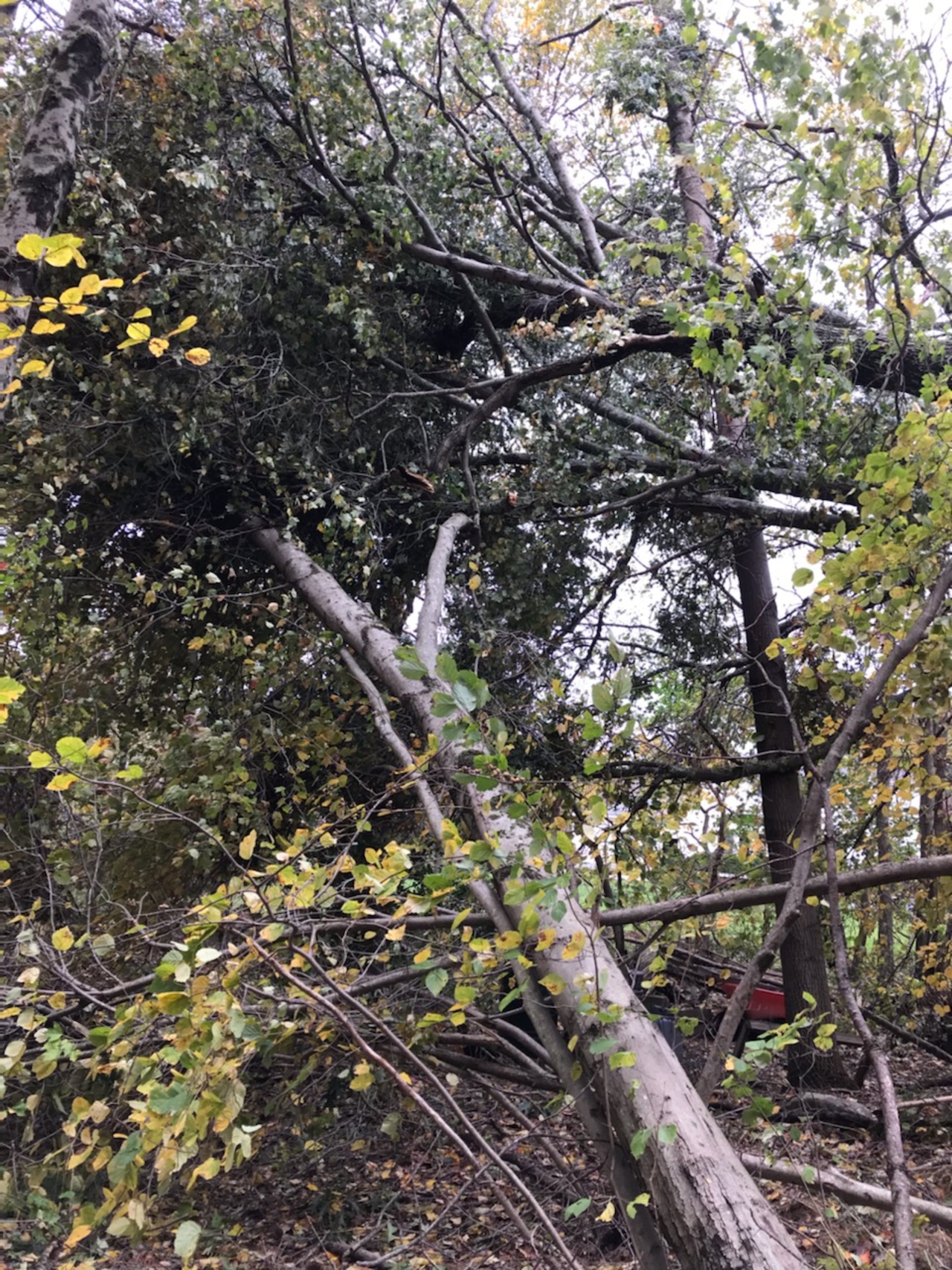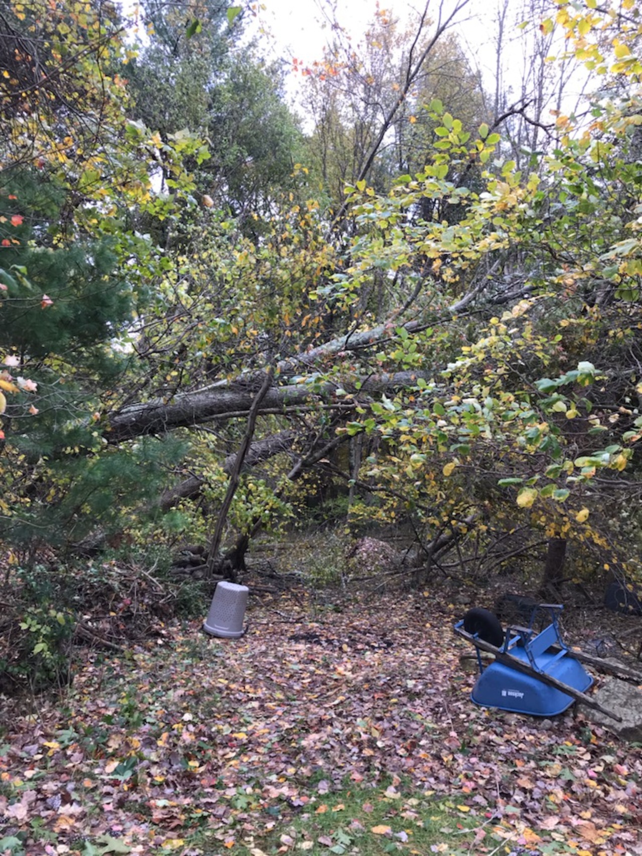 Thursday morning my parents contacted me saying they had a bunch of trees down. The trees are all at the back of the property line in an area where the ground is rather wet at times of the year. I haven't seen the carnage in person yet but they say 3-4 larger hardwoods are down with another 5-6 smaller hardwoods holding up the larger trees. Its like a whole line of trees blew over. Shouldn't be any damage, the trees are 75-100 feet from the house.