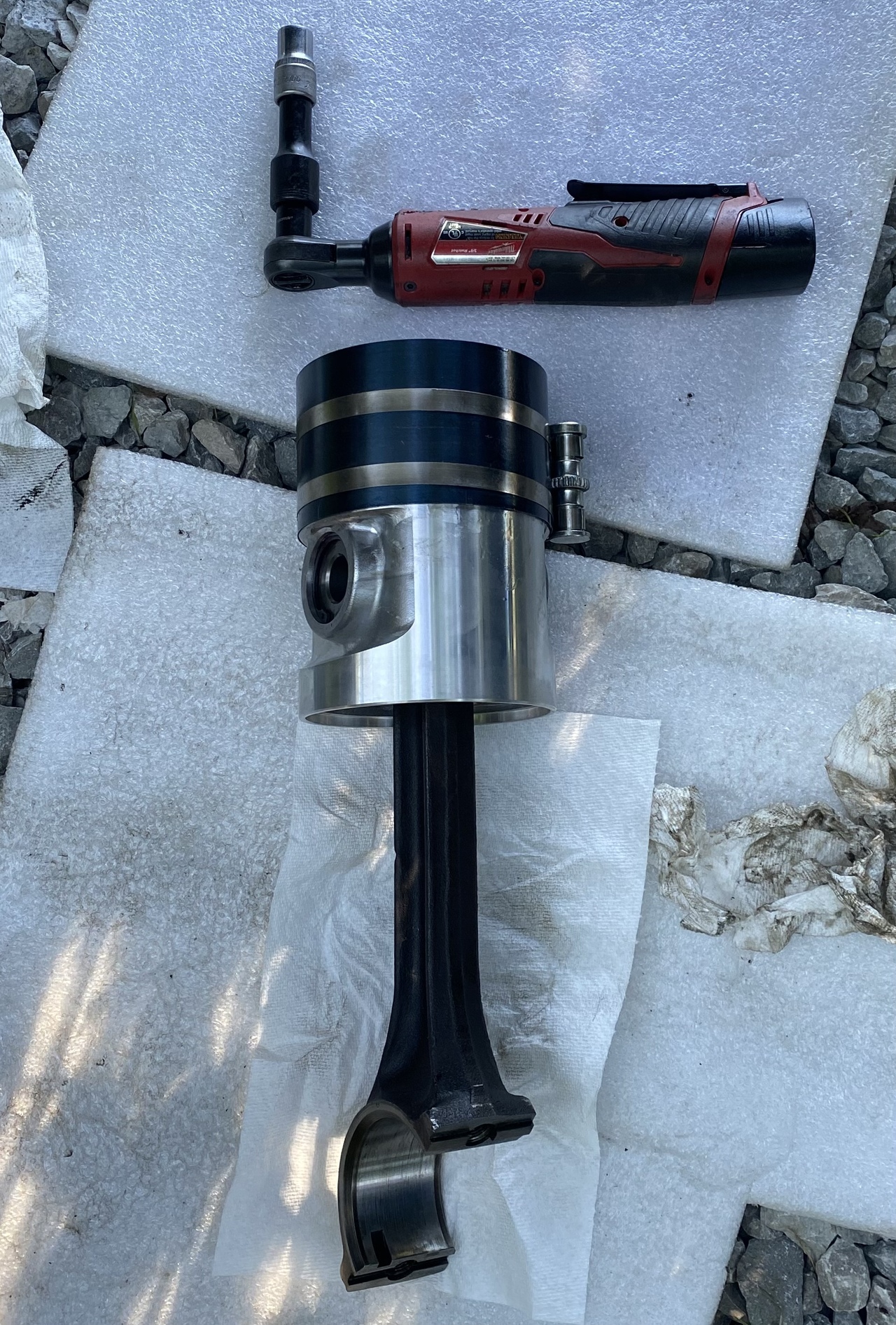 Then the rod went back in its place to get the piston retaining bolt torqued.