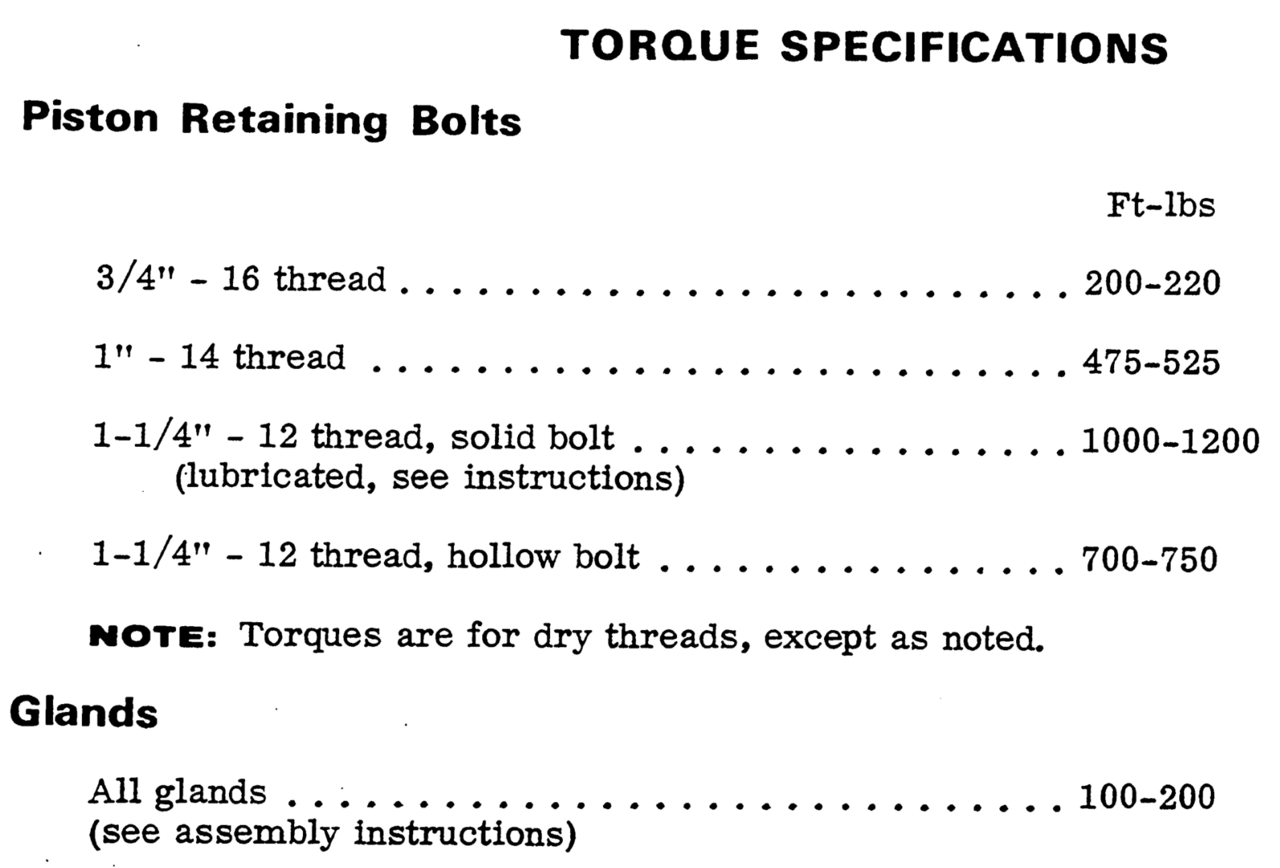 I stand corrected though, it's the 1-1/8 bolt that's spec'ed at 1000-1200 ft lbs. I read the service manual last night and this 1" bolt is spec-ed at around 600 ft lbs. Walk in the park eh?
