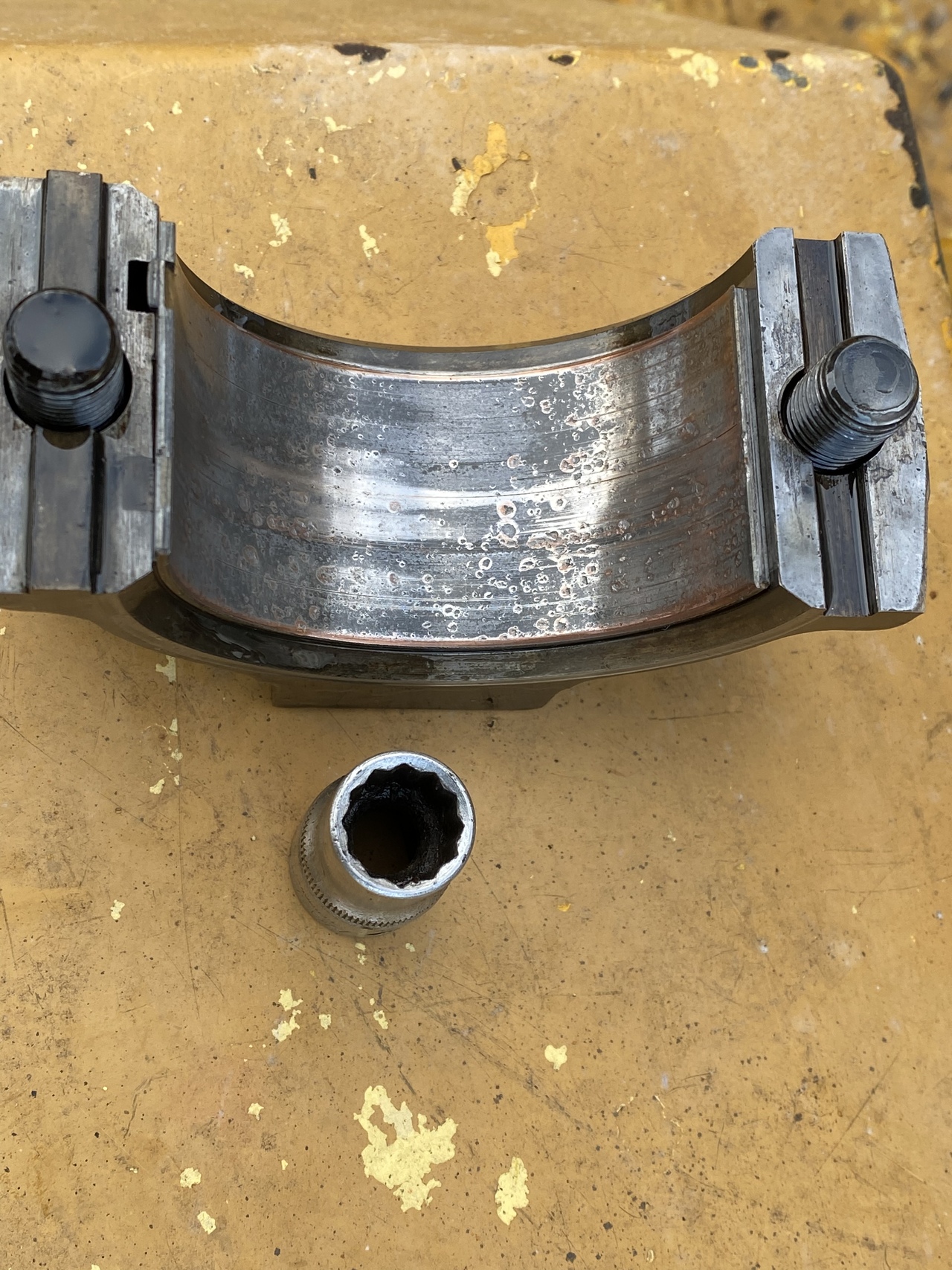A few minutes later this grade 8, 1000 ft lbs tight piston bolt's staring at me defiantly. And I'm staring at it in defeat, not even having a 1-1/2 socket. Fine, we'll fight another day.