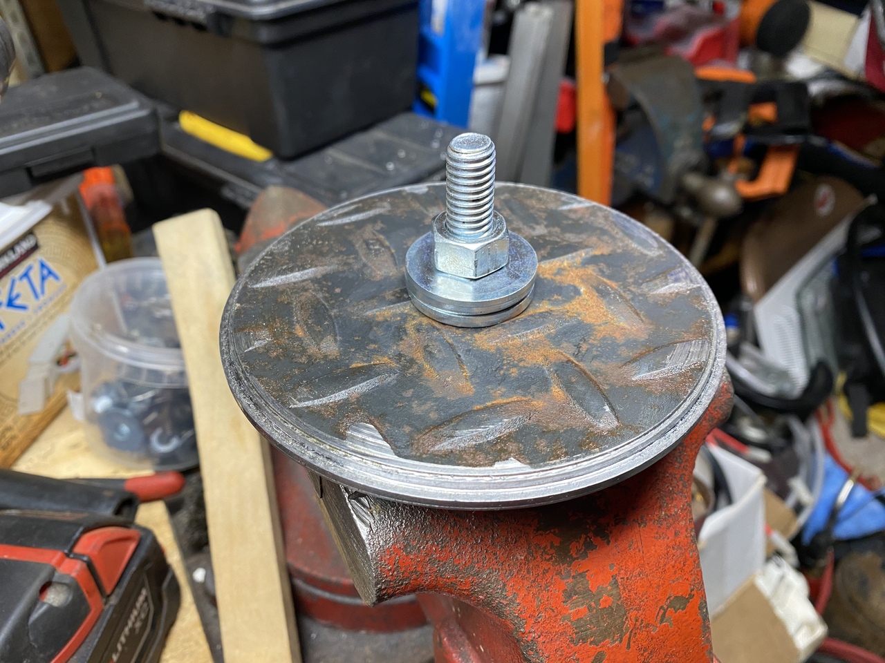 Not having a big vice or a shop, my preferred method of getting the piston retaining bolt undone is with the rod in its original spot on the device if possible. This one is secure here and ready for action.
