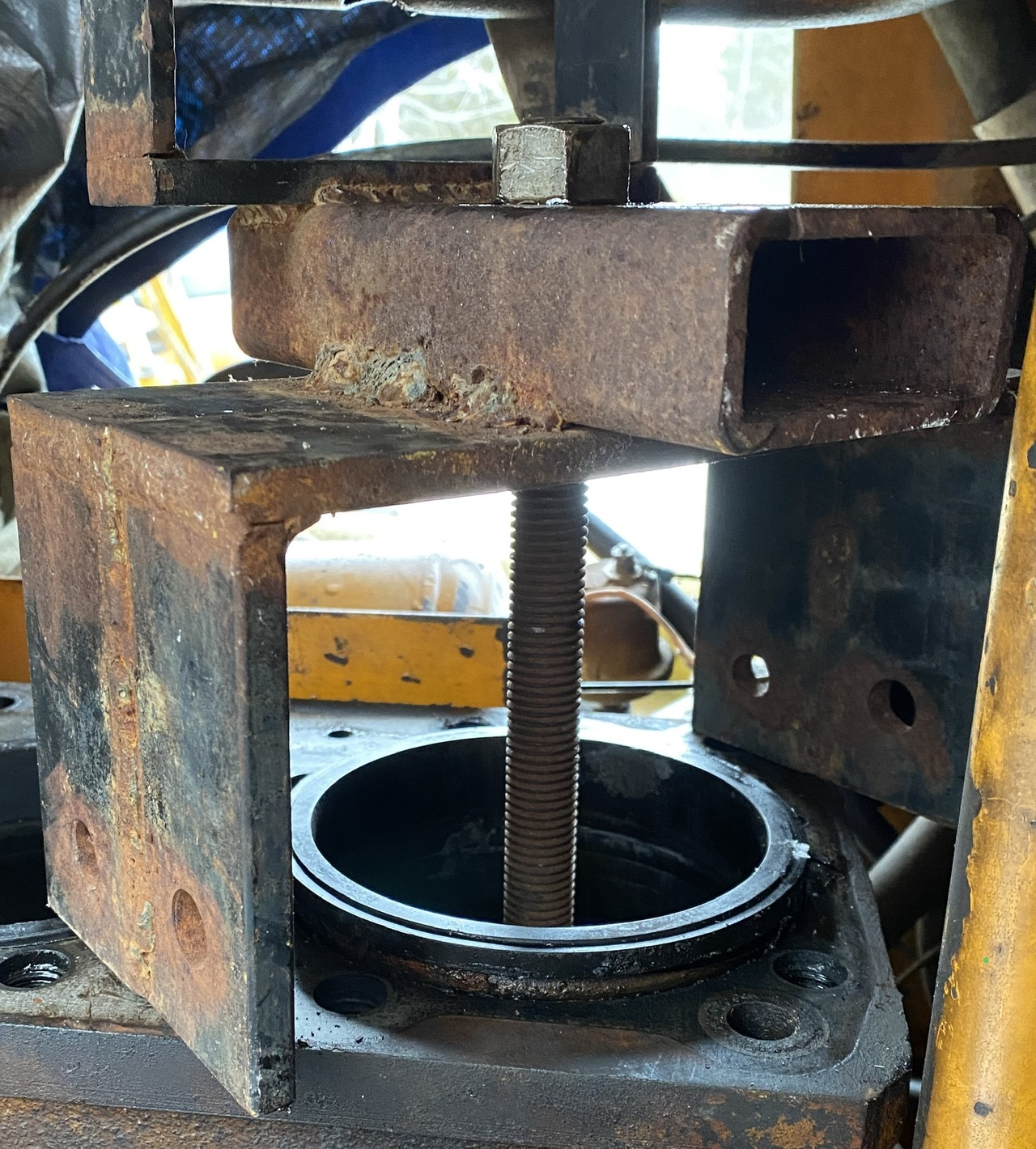 One of the dipper cylinders I had done last year had an even bigger bolt, using the 1-7/8 socket. Without warming it up good with the propane torch the 1" bar was bending and the bolt did not give in. After warming it up it came undone, with good effort though.
