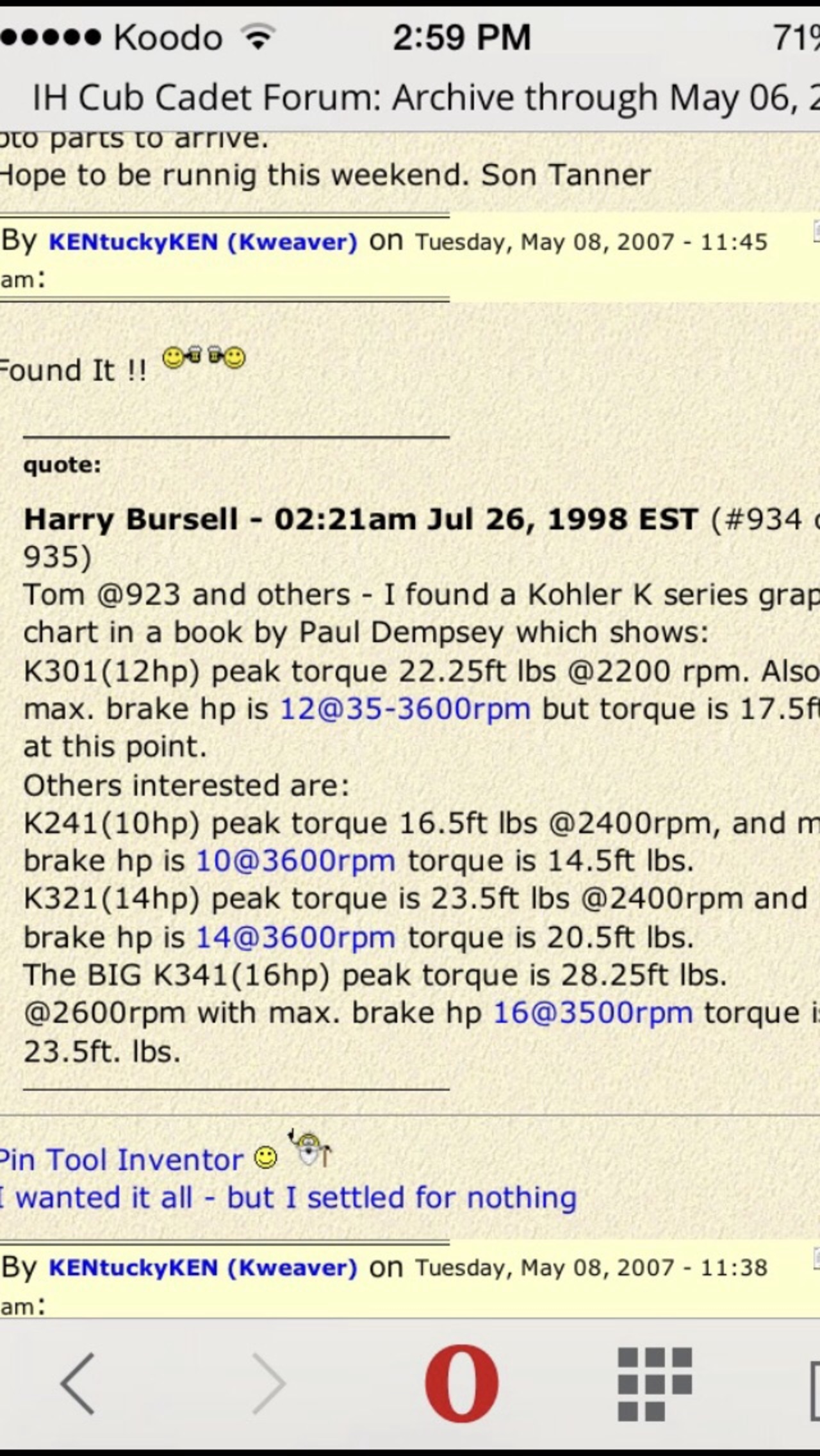 Any of you know what torque specs does the K321? Could there be such a big difference in torque between the 14HP K321 and the 16HP Onan?