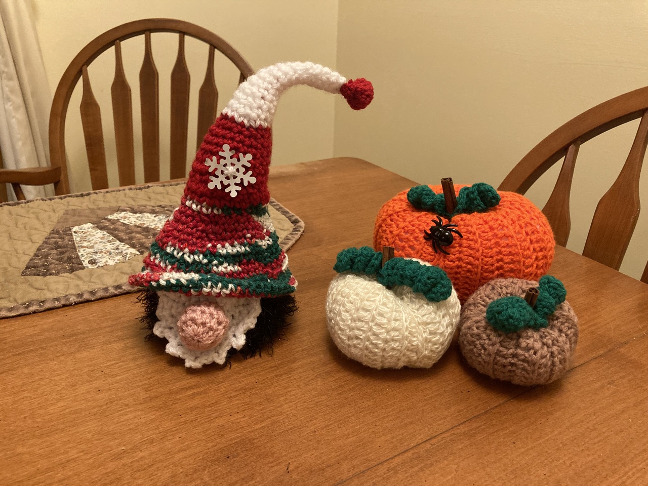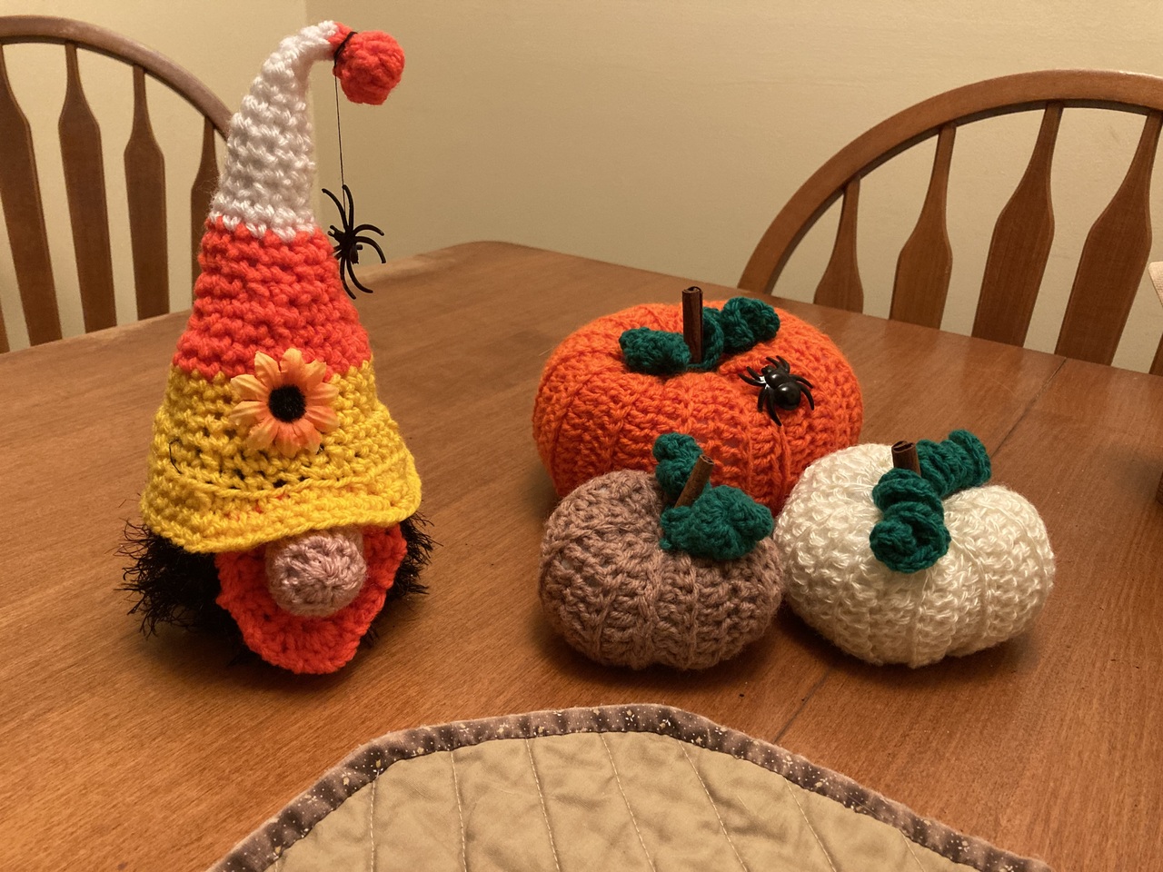 Picture for Gerry, or anybody. Wife crochets stuff. So, new creation last nite. A crocheted gnome. For Halloween.