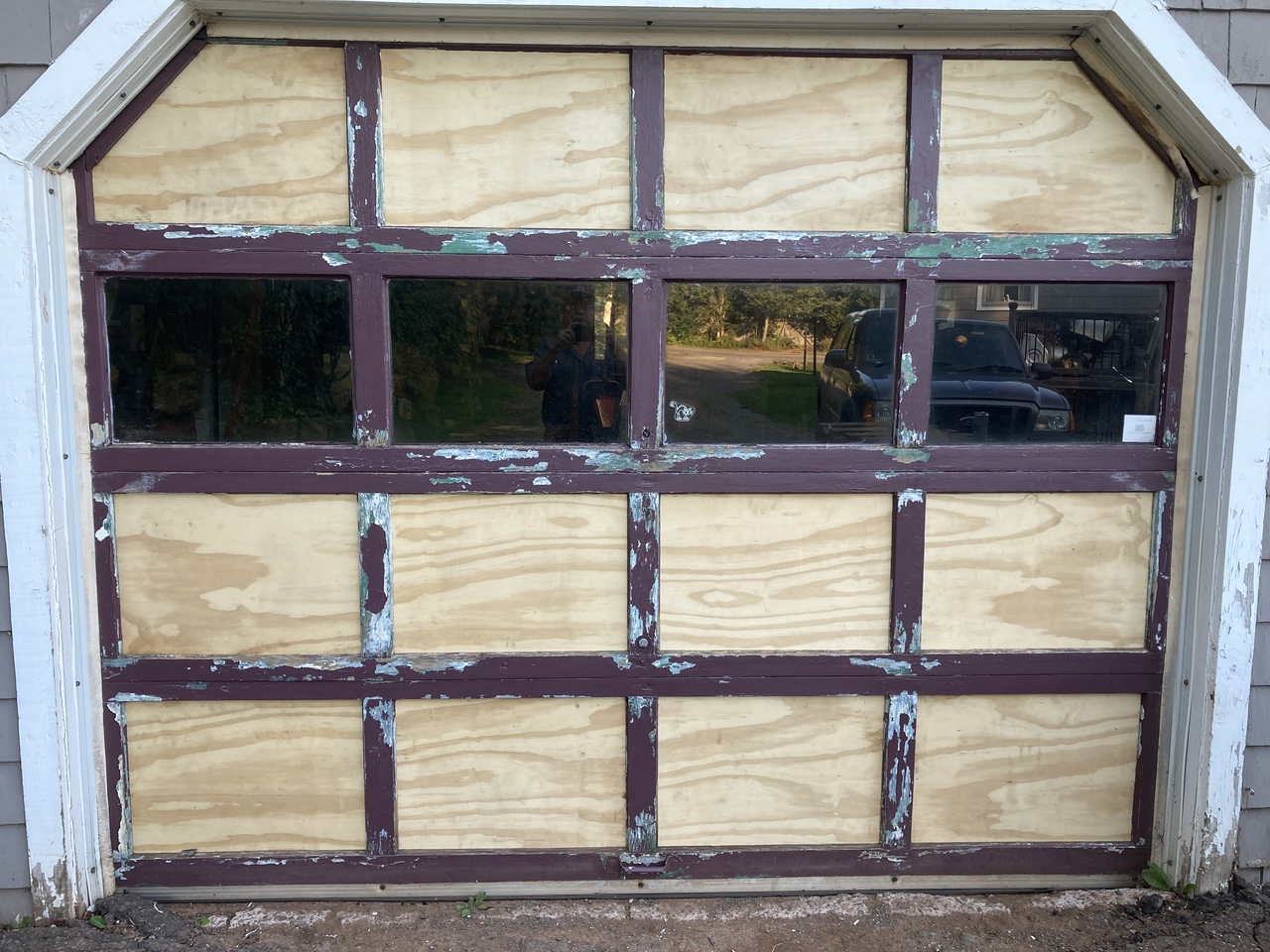 Poor old door about 45/50 years old. I’ve lived here 30 years. Panels all bad from sweating in the winter time with heat on. Was scared they’d blow in or snow push them in in a snow storm. They should do for my time now.