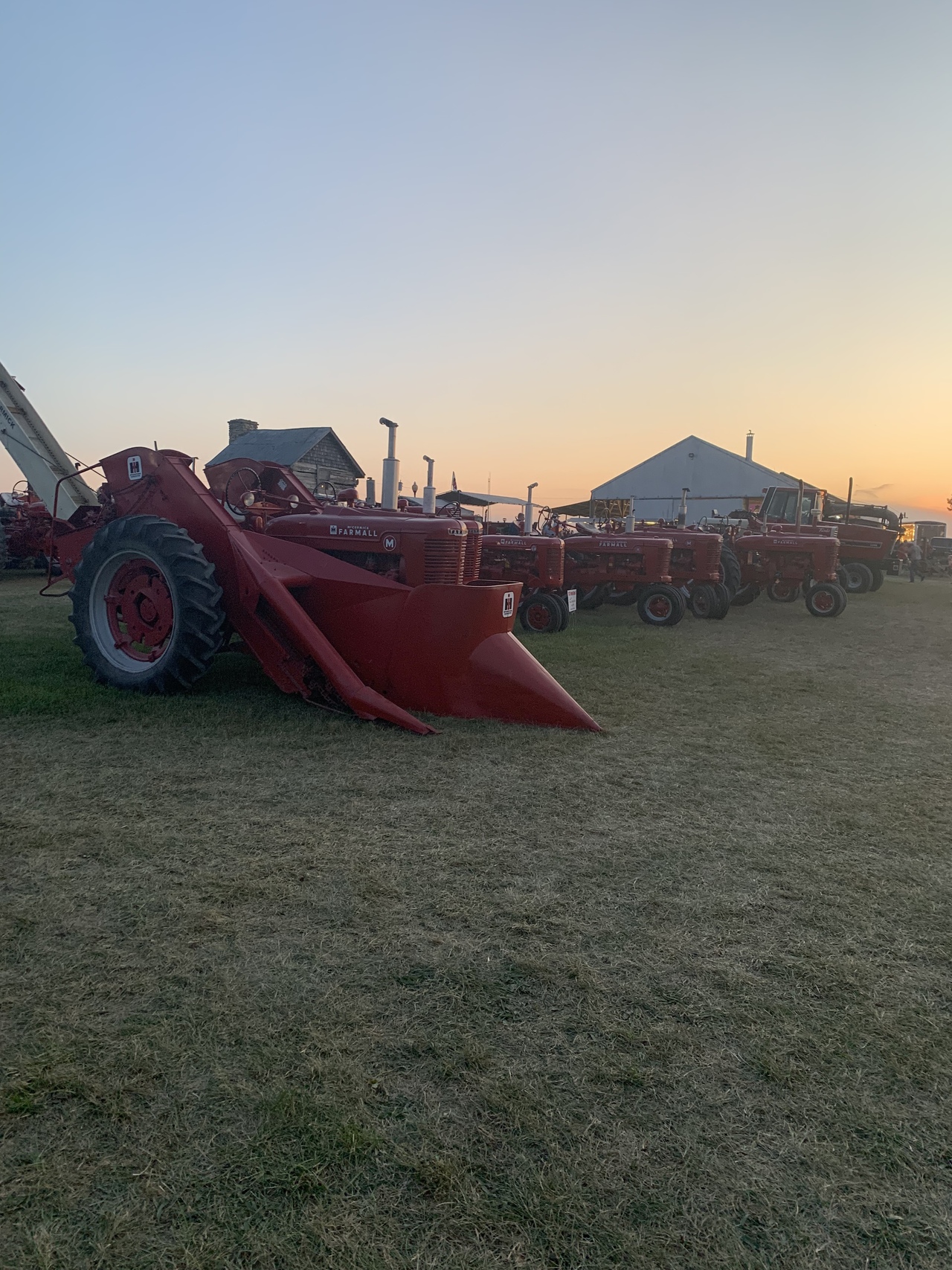 Field of Farmall. Including a nice example of a M with corn picker and a Vintage thrasher.]
