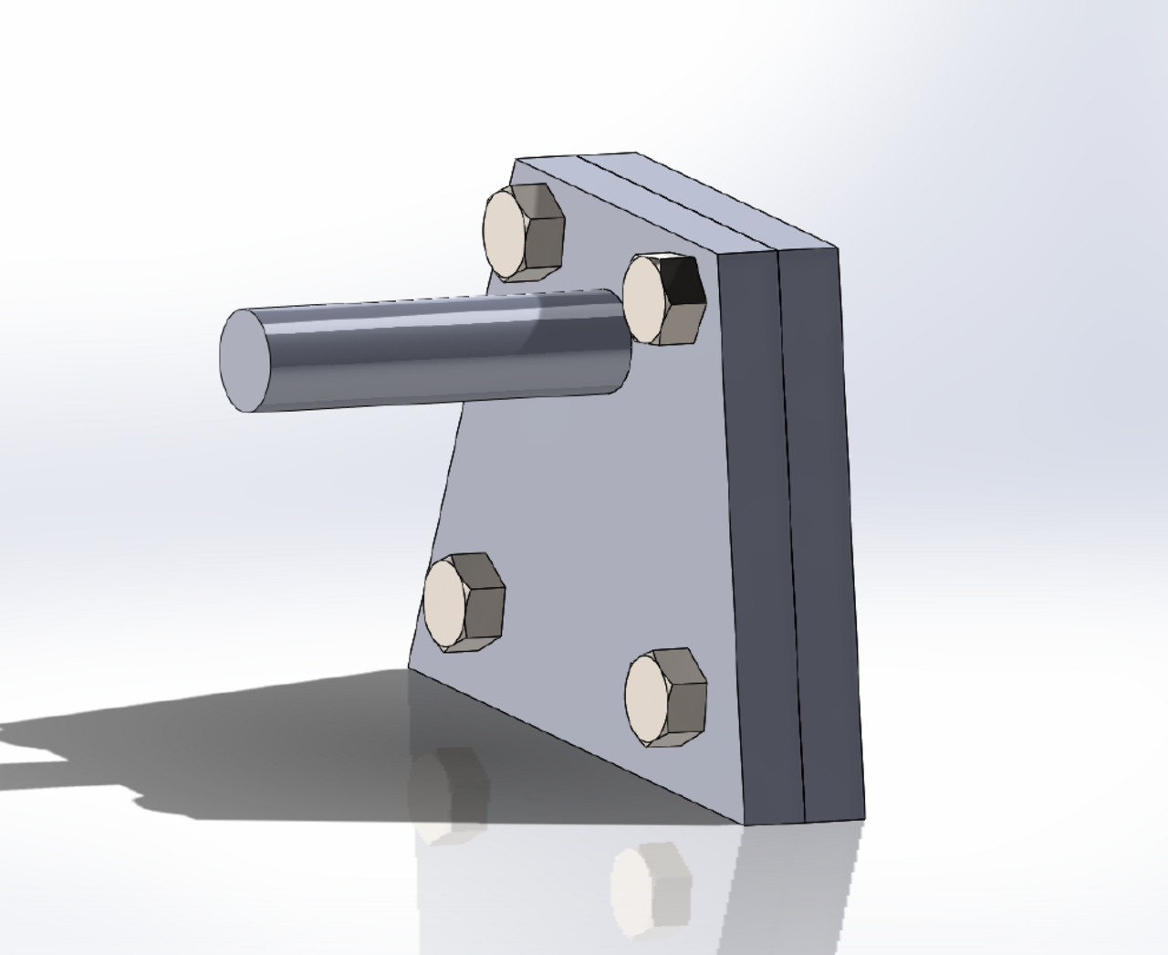 Put a couple 1/2" plates together, shaped to fit the loader uprights. Weld short 3/4" pin at inside end only. Drill and thread four mounting holes. Drill through uprights to fit mounting holes.