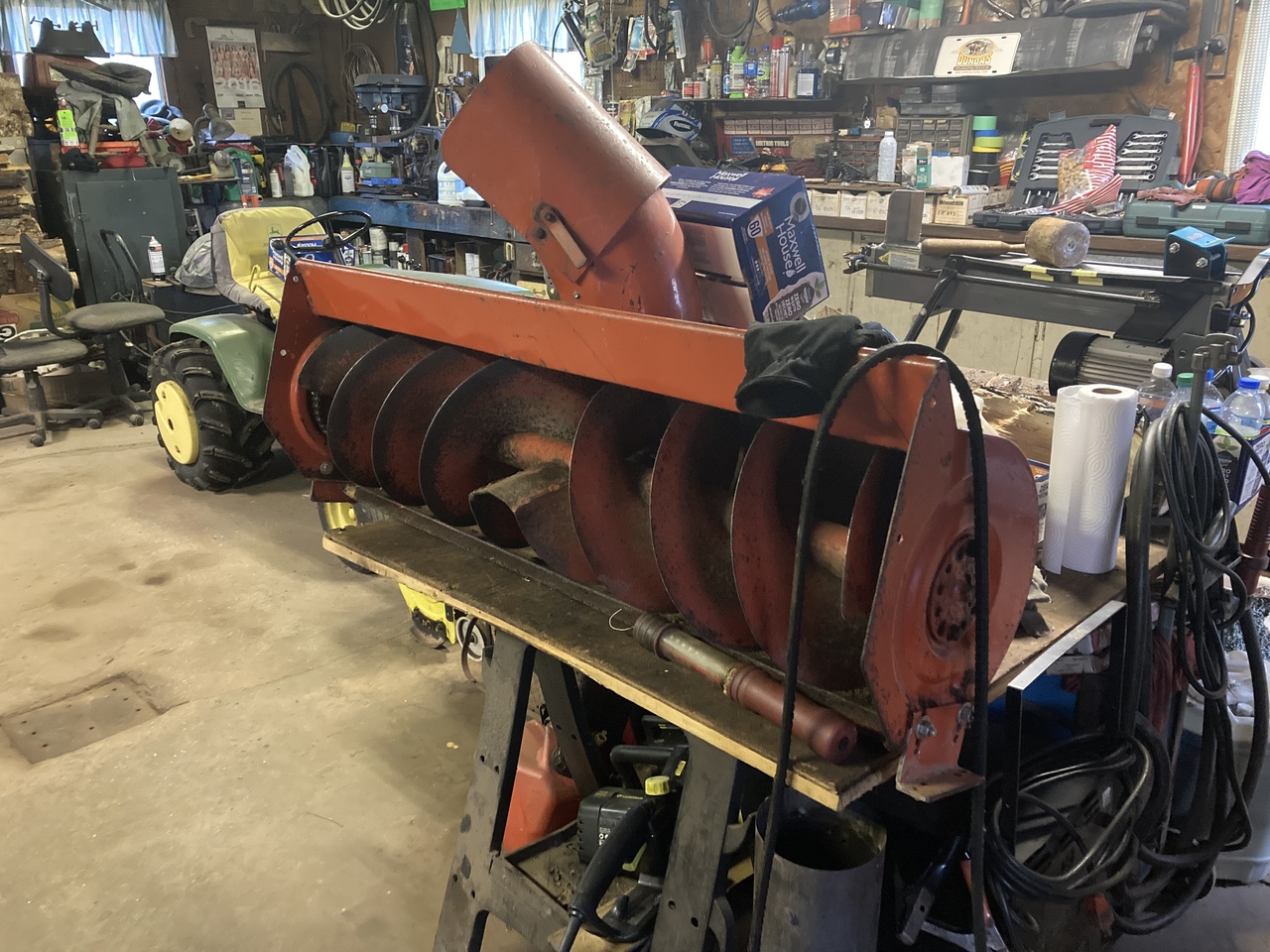 Not easy getting the thrower down off of that bench by me self. Getting to be a little to much for this old fella. Any way. It’s on the floor. I’ll continue. One troubles is, I have not seen the belt for it yet any where. :106: