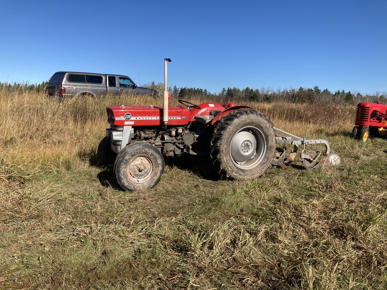 Look at all those red Masseys! I'd have liked a few rounds myself. That's a good buddy you have to let you on his tractor!