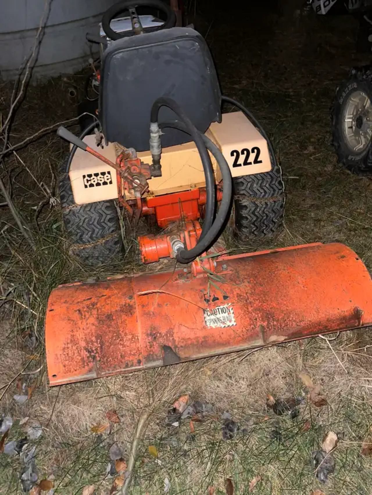 Hi I’m looking at selling my case 222 tractor it’s a 12 hp air cooled engine hydraulic drive tractor has high and low range hydraulic drive tiller on rear and 36 inch blade for front has new tires of rear fluid filled and tire chains just had starter rebuilt and put an electric fan on for the hydraulic cooler runs and drives good just don’t use anymore 1500 obo