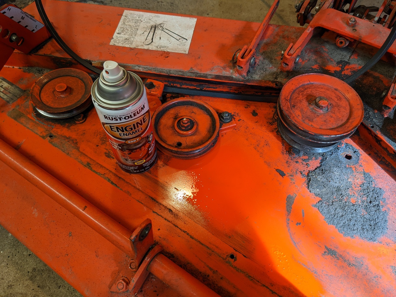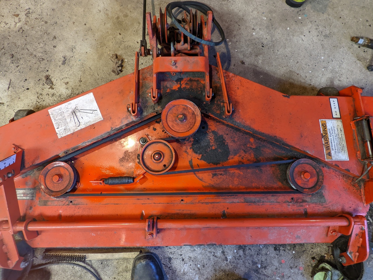 Great improvements I'd say. I feel the same way as you. The oem tensioner pulley is in the wrong spot. At any given time I can grab and easily spin one of the outer blades with just a finger or two. This is definitely on my list of deck upgrades. I always felt that my pullies were slipping on the belt. My rm48 needs some service as there is quite a bit of slop in the mule assembly and hope to fix it up in time for spring. Thanks for the idea.
