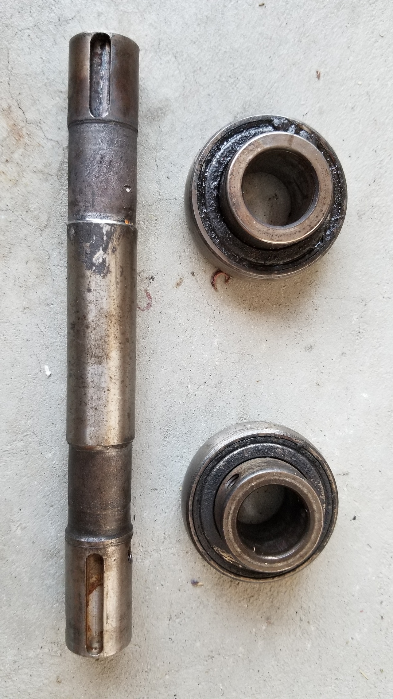 I think the bearings are eccentric like the snowcasters but I have not confirmed this. Neither bearing was seized. The bearing by the pulley? has a little vibration as you turn it. The gear side? is nice and smooth like new. The gear side bearing was missing 1 of 2 set screws. Its possible the bearings may not have been tightened down by the previous owner/factory.Eugen wrote: ↑Fri Dec 30, 2022 9:27 am @MattA I'm assuming those are the excentric tightening bearings in the first picture? Did they seize and turned the shaft down from friction? What are you going to do about the shaft? With access to a lathe and welder you could add material and then turn it to size I suppose.