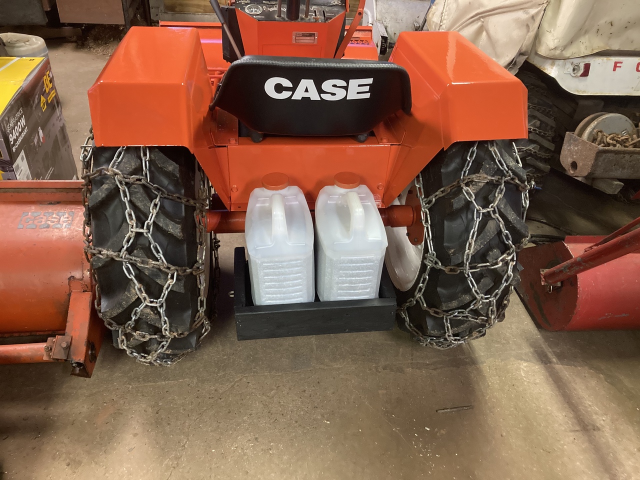 No trouble with traction with my Case 446. The John Deere has atv tires on it. Gators, if thats a name you recognize. I know nothin about atv tires, any way, they are sorta shaped like lug tractor tires. So a number of years ago I put stainless steel screws into the lugs on the tire. They are all worn out now, but at the time they seemed to help on ice. You could see the marks on the ice from the screws.