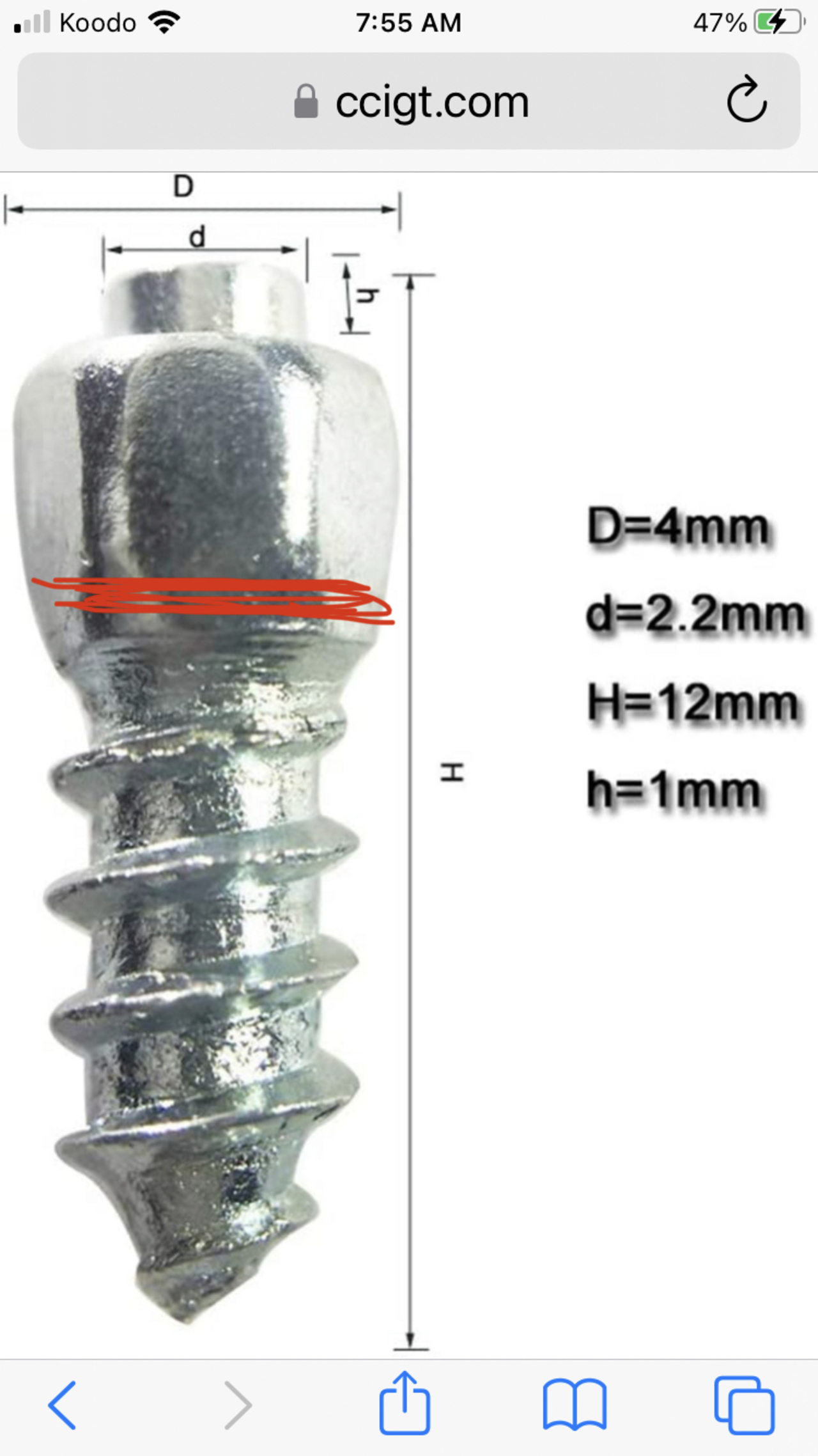 Yes they are hardened as per the add . I do not know if they would pull out , but do come in other sizes . I have not dealt with studded tires as they are not allowed on road hear only up north more in winter only .propane1 wrote: ↑Tue Dec 20, 2022 7:03 amI wonder if they would stay in. Only just a 1/2” long from what I figure. Are they hardened Dave ? How far could you get them screwed in before the socket slips. Maybe farther than what I show In the picture.DavidBarkey wrote: ↑Tue Dec 20, 2022 6:42 am image.png