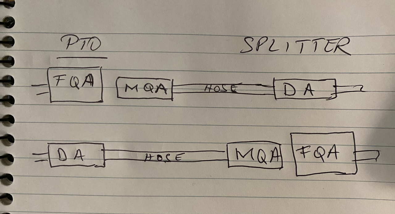 Forgive my lack of terminology here... I've got male and female quick connects on my PTO, my hydravac and a spare hose to loop the lines. That allows me to loop the hydravac lines when in storage and add the spare line to loop the PTO ports.