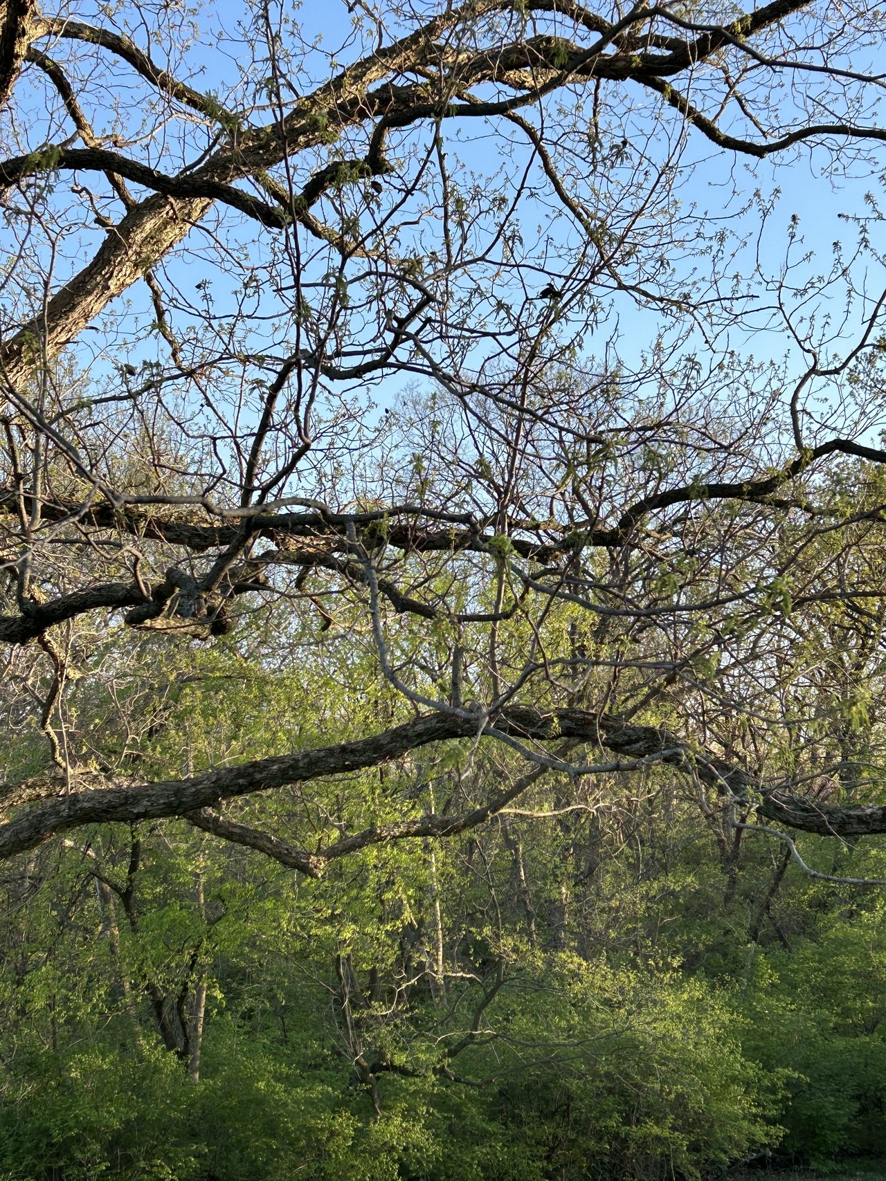Not sure if you can tell, but that is a picture of our pecan tree leafing out!