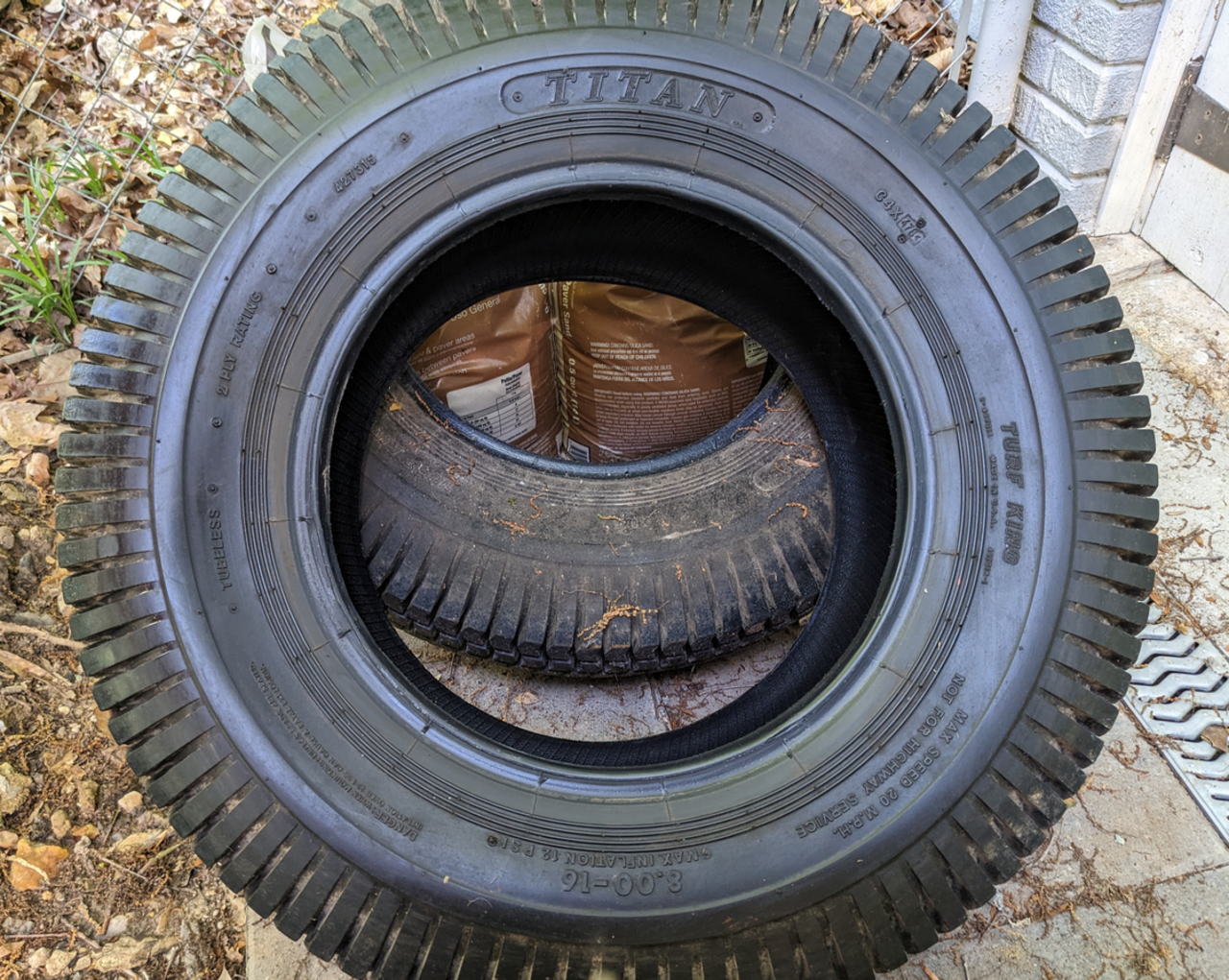 I have a spare front axle with hubs and wheels with the factory "ribbed" front tires