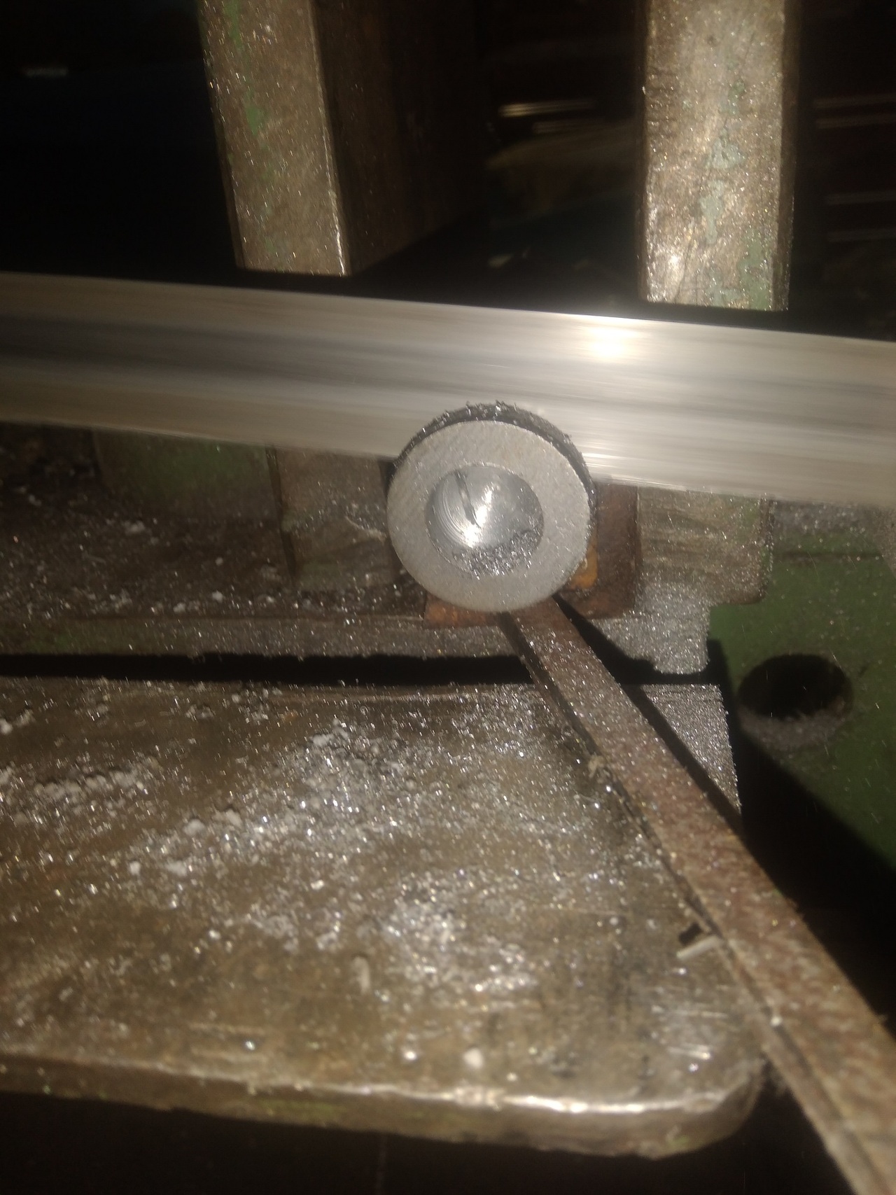 It took $90.00 worth of o-rings. 4 between each valve, 2 on each spool and 6 on relief valves. Missing was a spool stop washer that is 1" OD X 0.5" ID X 0.155 Thick. This is not something found on the shelf. With covid making it impractical to run out and pick up a solo item, scrounging became the next option. A 1" bolt was found and cut off at the thread end of the shank. After chucking the donner bolt in the drill press a 0.5" hole was drilled into the shank body, deep enough to get 2 washers if needed. The washer was sliced off of the shank, and belt sanded to the final finished thickness.