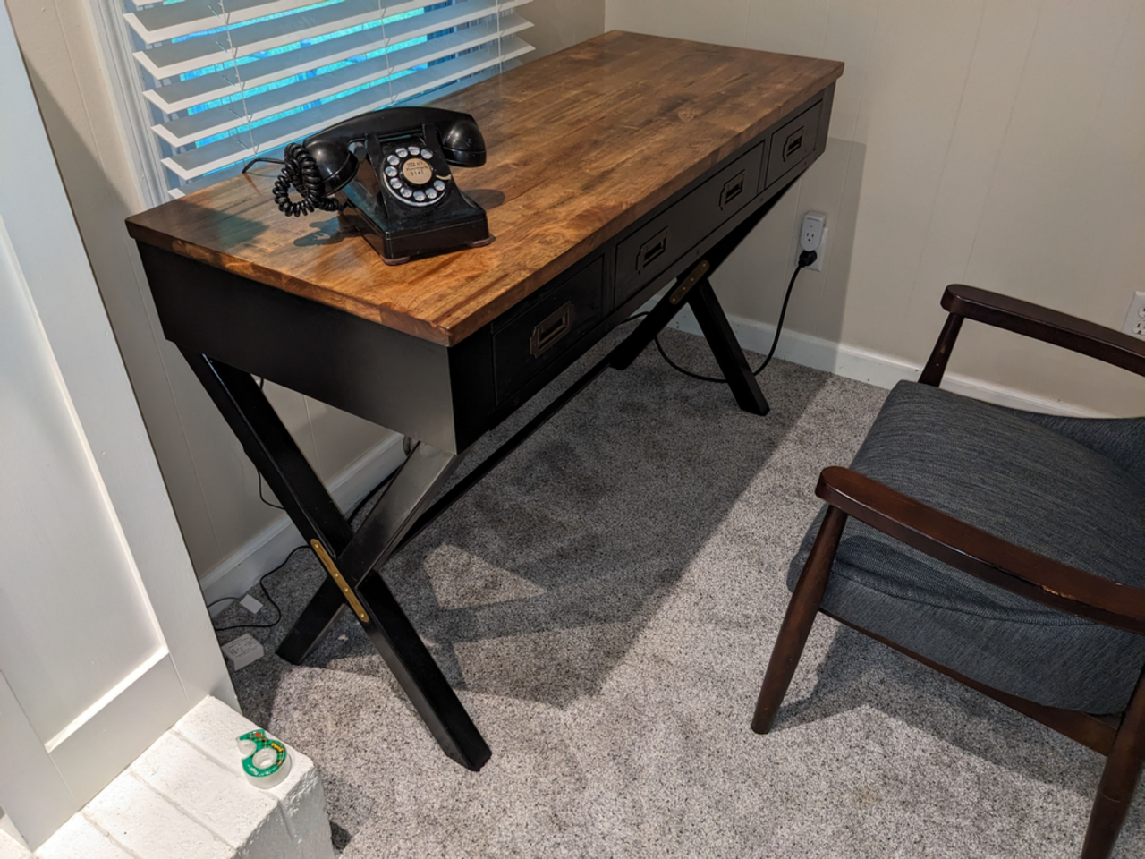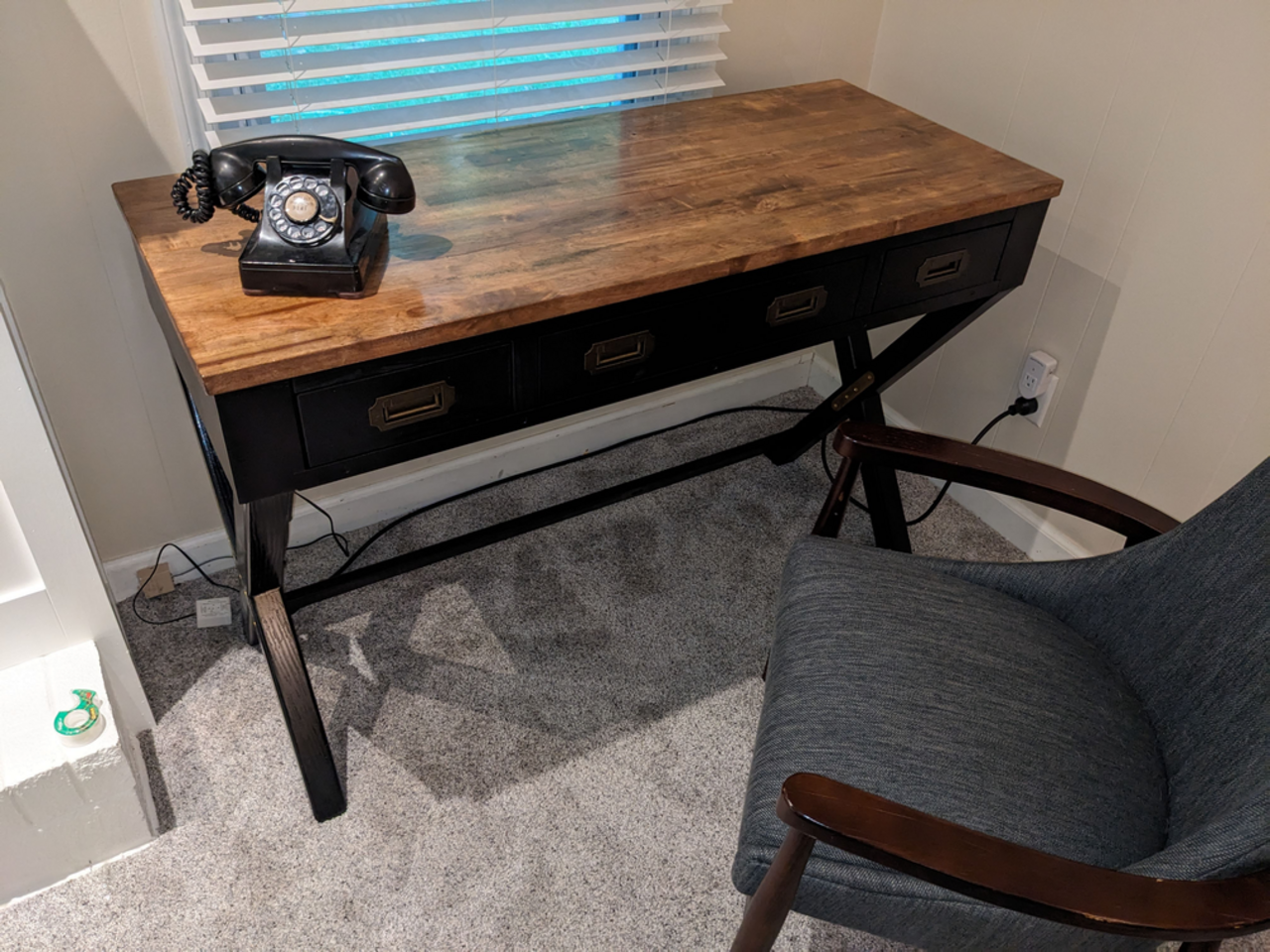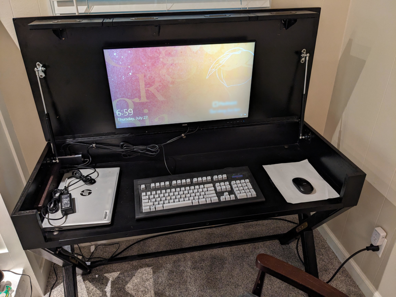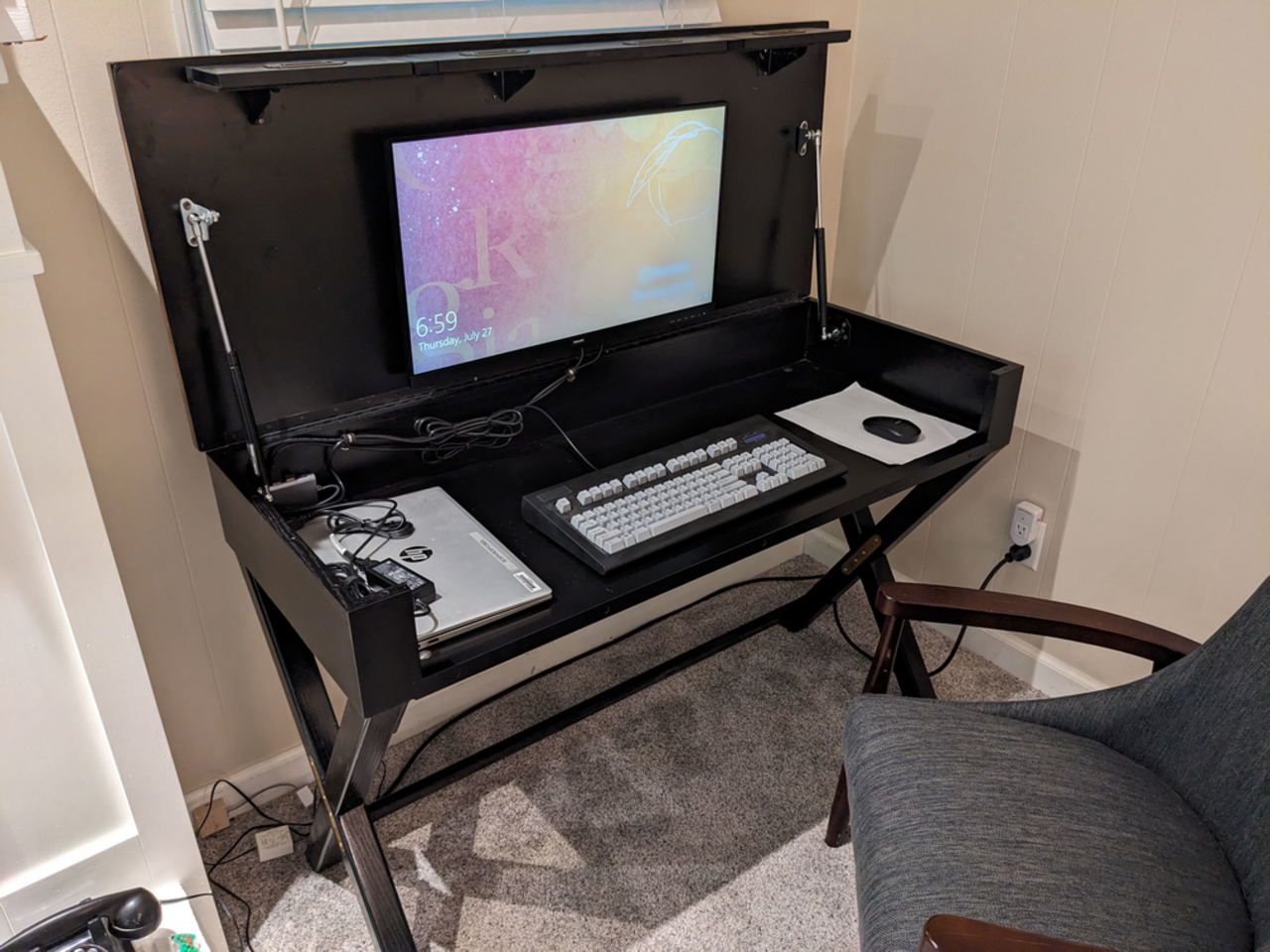 And voila! I'll have a nice computer desk when I need it, and a decent looking piece of furniture when I don't.