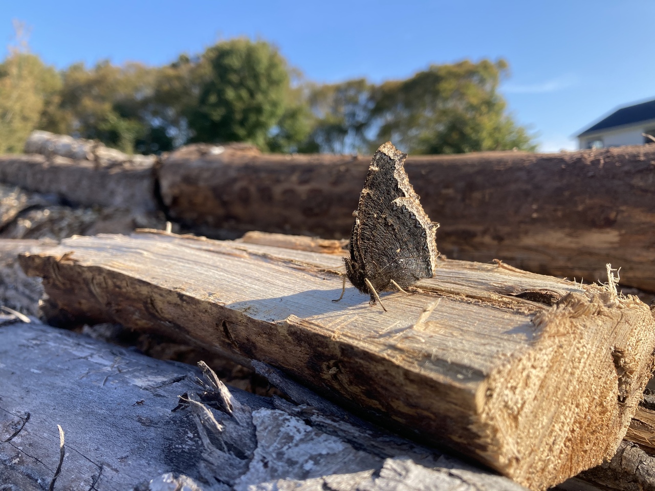 Butterfly on piece of wood.