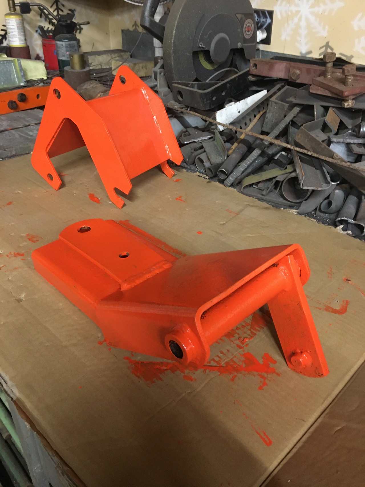 I bought this utility blade a few years ago and put it in the corner. I dug it out last week and started cleaning it up. A lot of wire brushing some sanding, a little bit of welding and some hammering with a BFH. There were some egged out holes and wear on a few pins. A few tig welds and some filing got it back in working order. Today did some painting and it should be ready to assemble it. Plans are to install on a 444 with rear tire chains and 200 lbs of wheel weights. Pics of completion to come. :peace: Harry