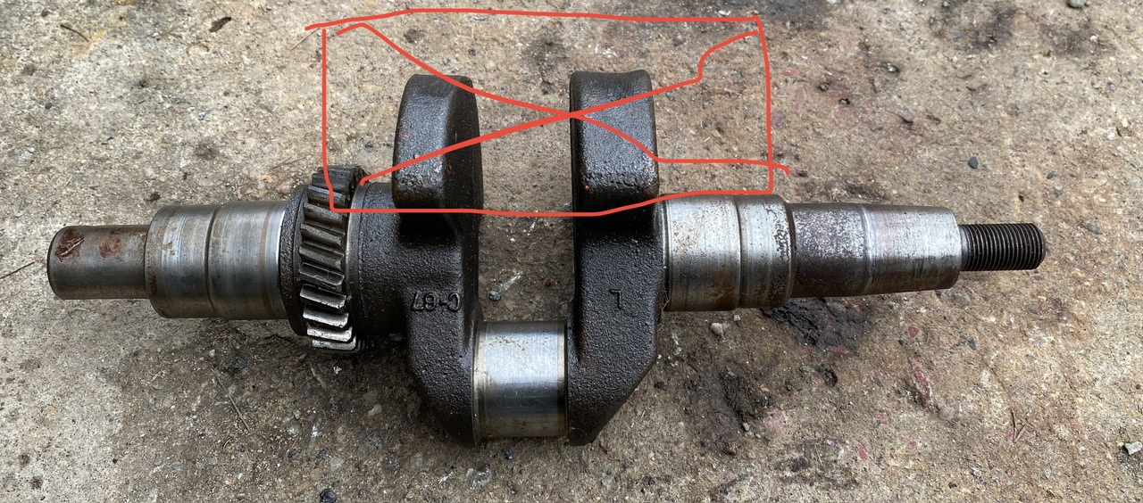 Look here at this k321 crankshaft. All I need to do is cut off the balancing weights. The k301 block gives me a sturdy enclosure for the unbalanced crankshaft, thus creating a big and strong vibrating element. I'm thinking a pulley on the keyed shaft, belt driven by a smaller engine I got here.
