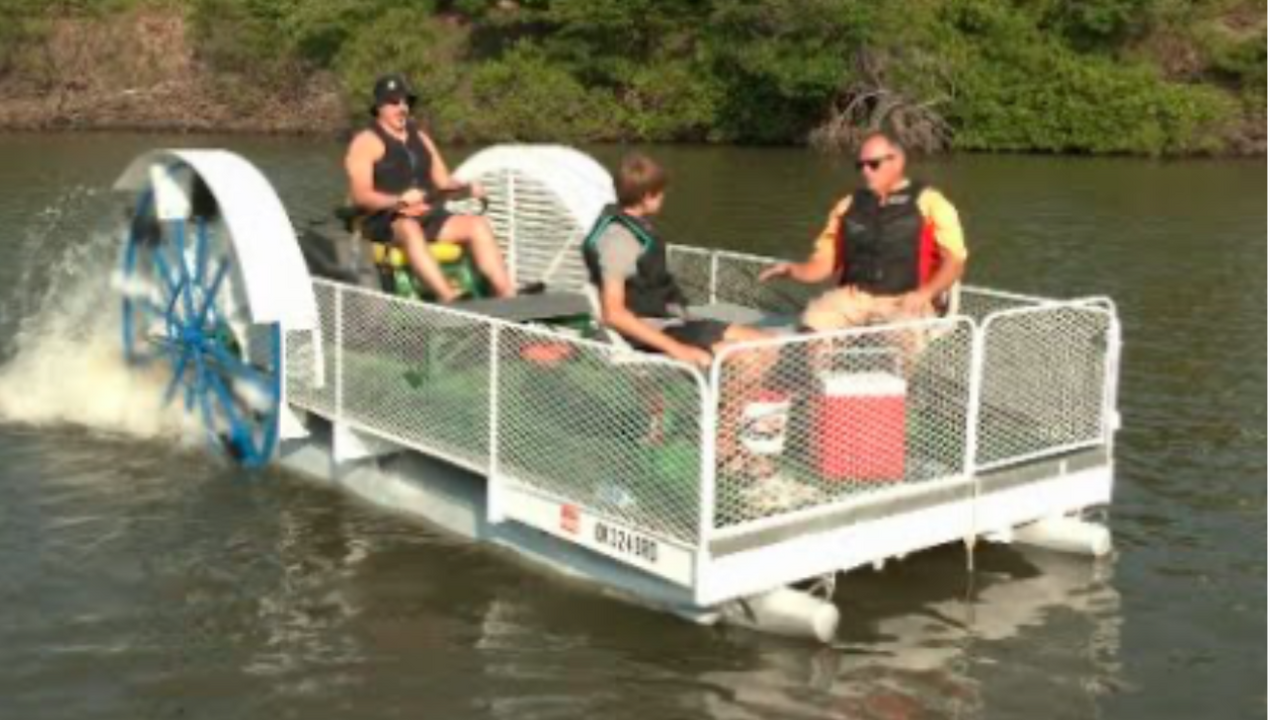 Using a zero turn mower to drive the paddle wheels is a interesting idea.