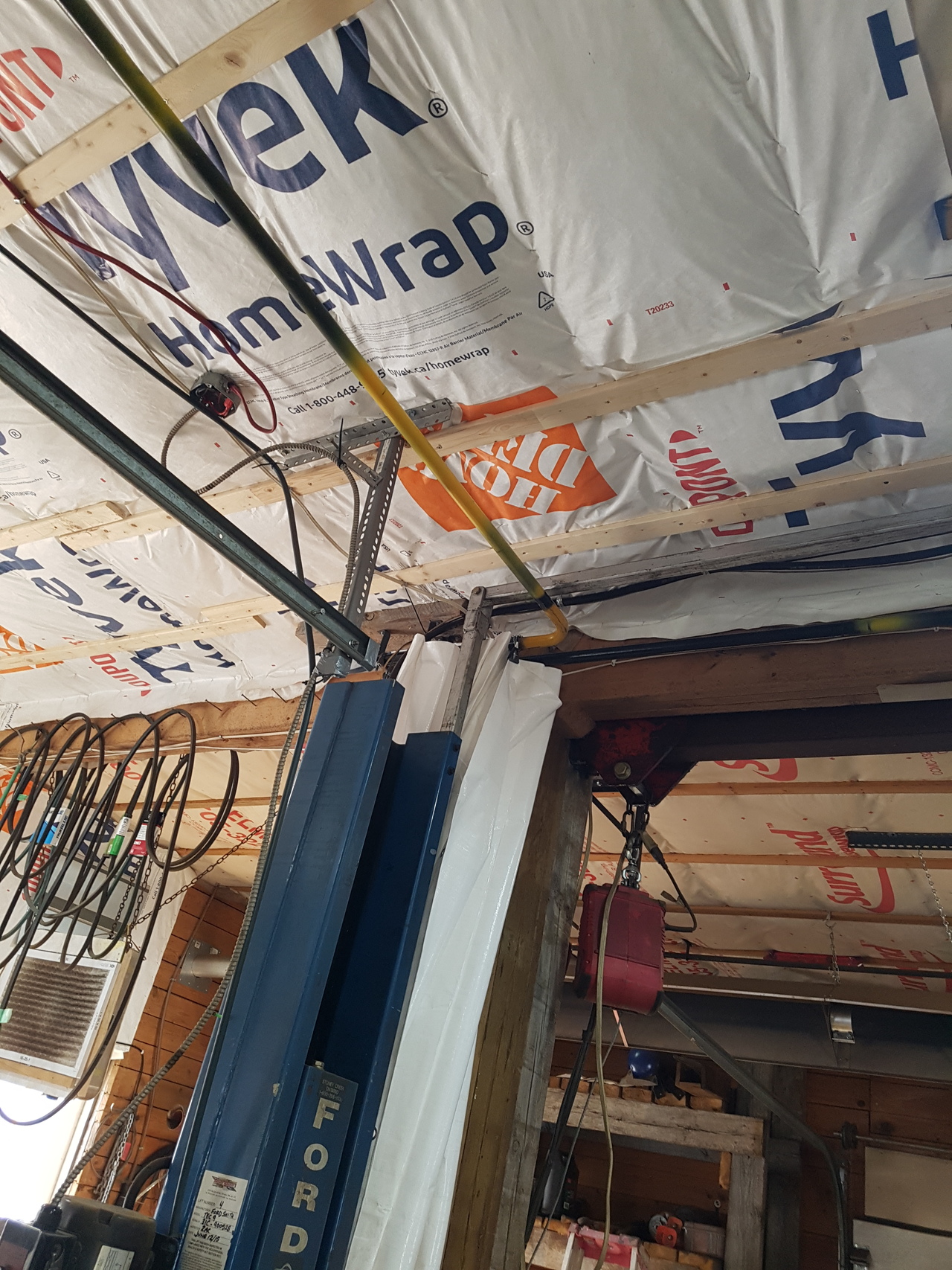 outside of roll up door with fan lnstalled , window next to heater is opened when in use