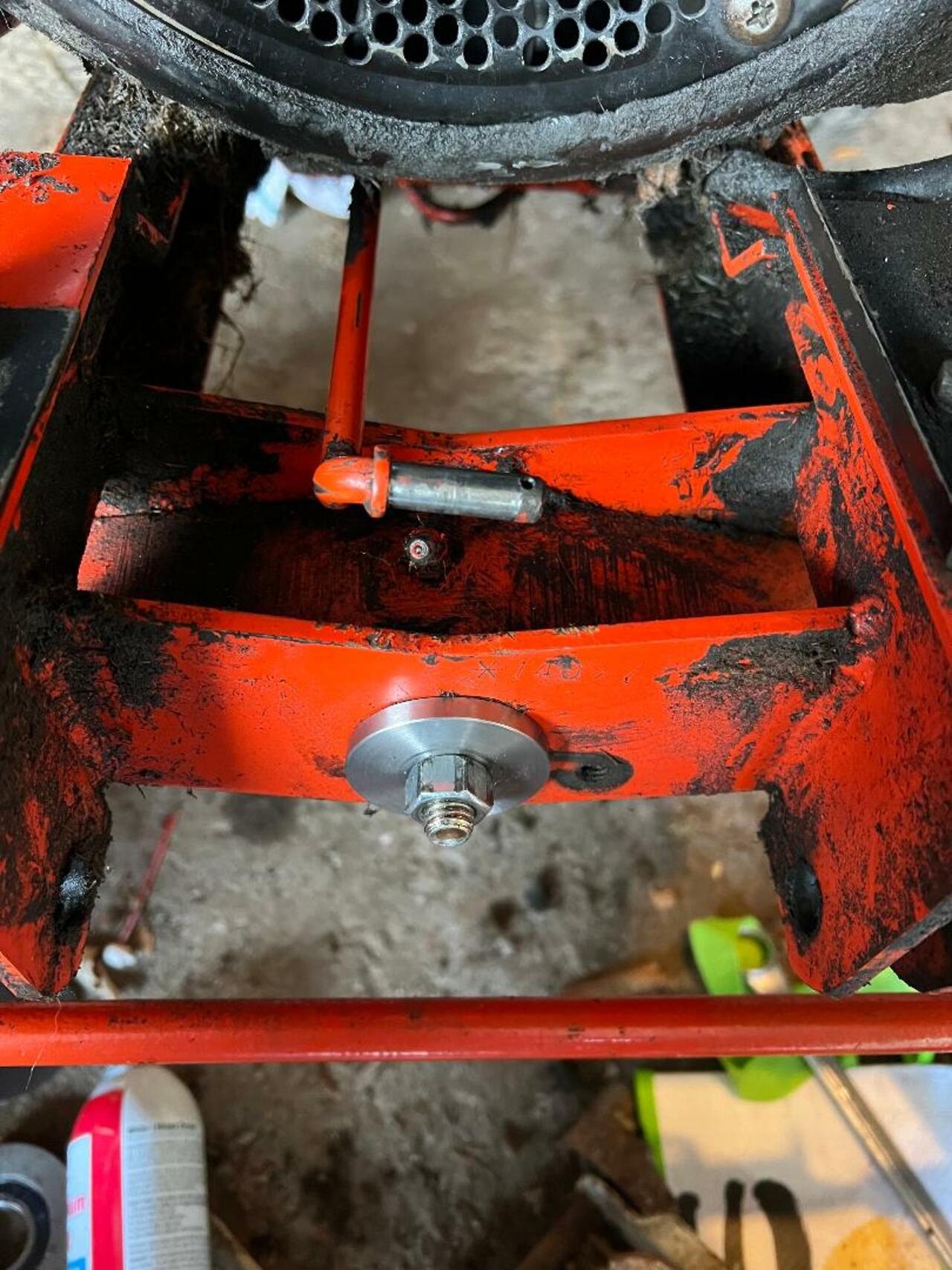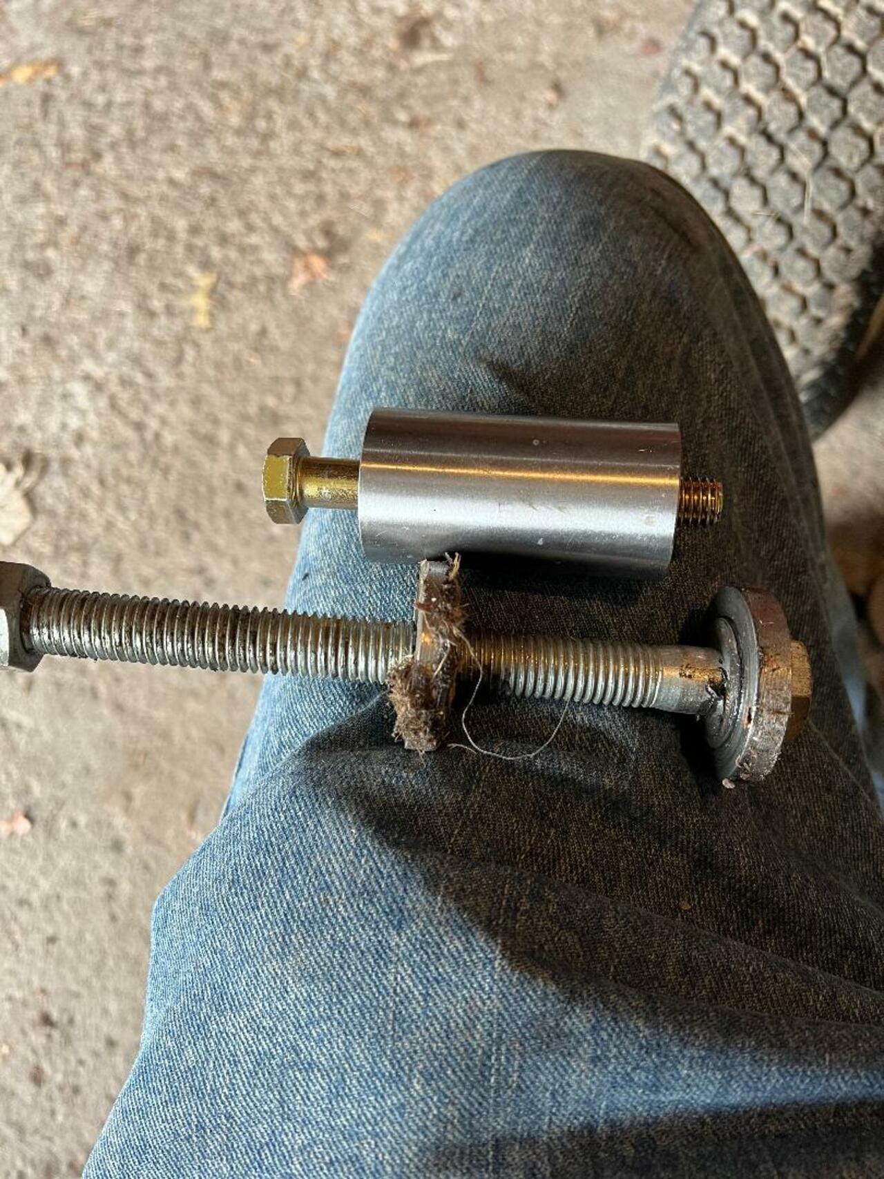 Got a new pin, fitted the bolt so the nut protrudes forward (easier access for removal and no threads for the belt to hang up on) .. Here's a few pics..