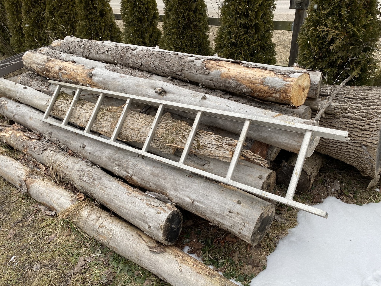 Guys, I thought I open a new thread on this subject and continue what we started over in the Pictures the moment thread. I got a few logs I want to mill as I need planks. I just tried a last night an ash log and cut a couple of planks, it was hard. I might not be doing it right, I'll try again. But I do appreciate any input you guys might have. Here's the ladder half I used for making the first cut. I used deck screws to fix it to the top of the log, and adjusted the thickness to accommodate the ladder thickness and another 2" approximately.